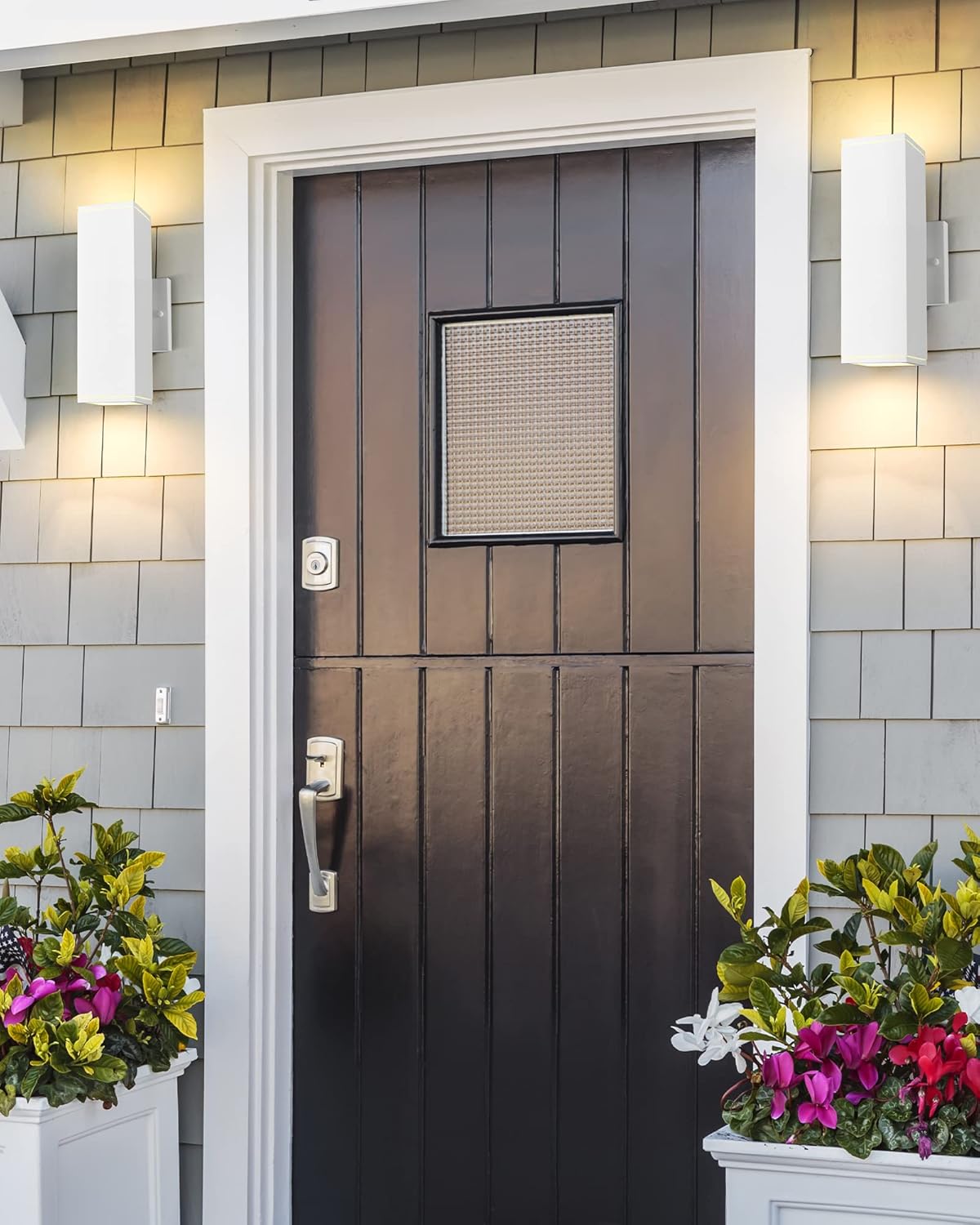 - MODERN STYLE: Unique square shape design, and the sanded white textured finish. The up and down outdoor lights for house have a modern style, which can perfectly decorate your porch, front door, garage and entryway, and bring you lighting.