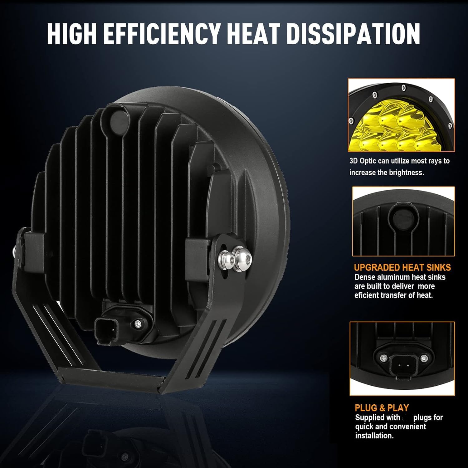 - 【Efficient lighting effect】Each light cup is combined with spot and flood beam design. Spot beam travels quite far out and has a nice width. The offroad light emits super bright amber light. Give safe view in most of bad weathers like rainy days, foggy days and snowy days, make driving safer.