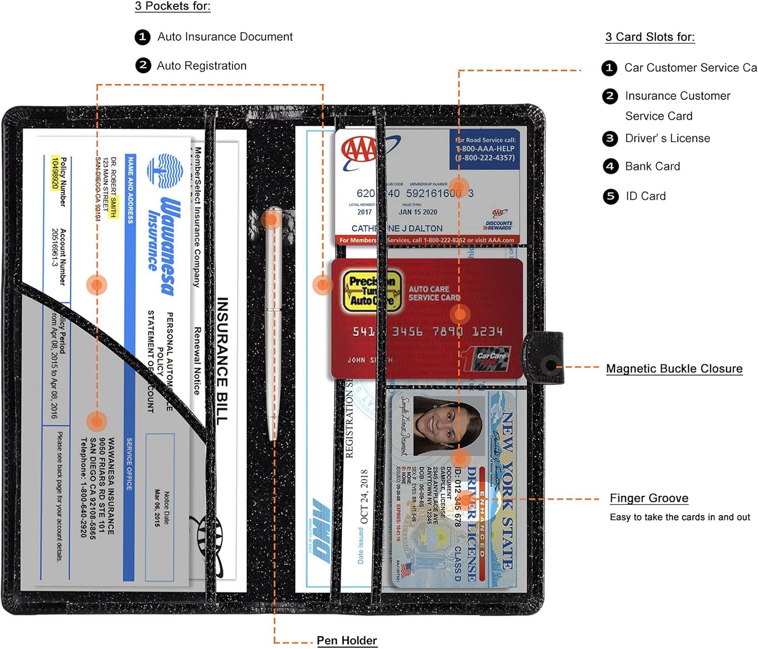 - Quick Accessible: Inside the auto vehicle registration and insurance card holder for car, the clear inner material makes you easy to find documents when you open it up, you can see exactly what they are and quickly show them when asked, even no need to take the stuff out.