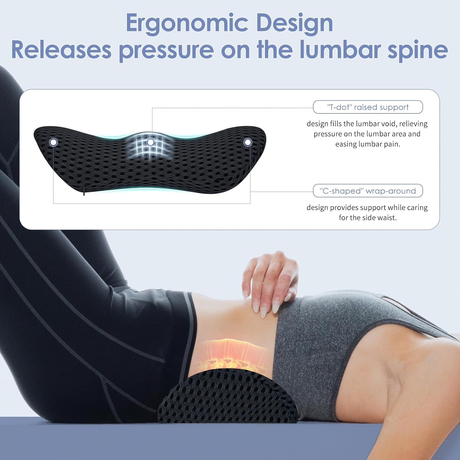Lumbar Support Pillow Ergonomic Memory Foam Lumbar Pillow, Relieve Back Pain, CMFY Breathable & Detachable & Washable, Neo Cushion Lower Back Pillow for Office Chairs, Car Seats (Black)