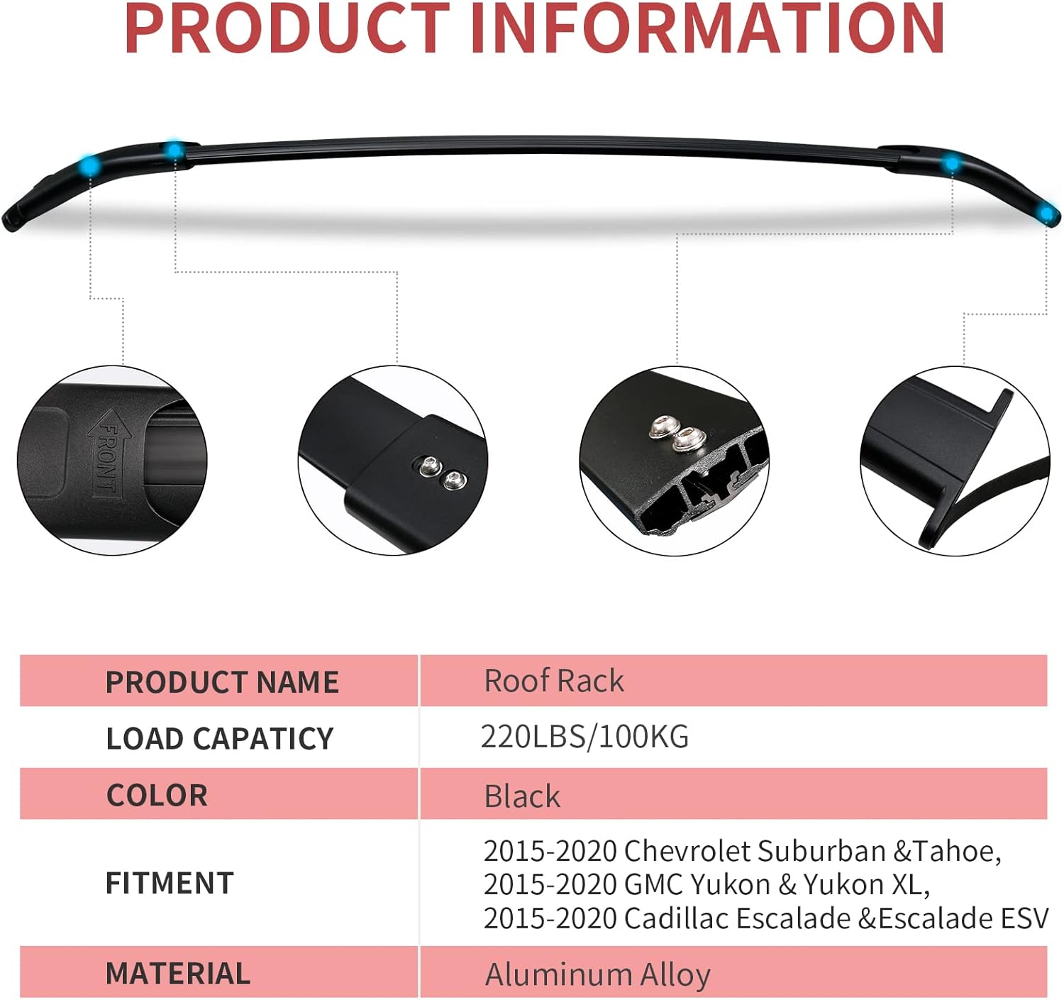 - 【Solid Addition】Fit For Chevrolet Suburban & Tahoe, GMC Yukon & Yukon XL, Cadillac Escalade & Escalade ESV 2015-2020. (WITH SIDE ROOF RAILS).