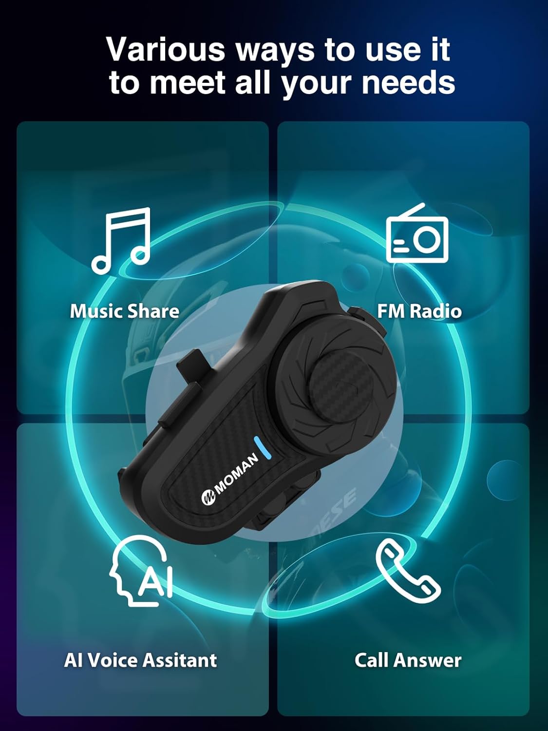 - 【No More Dull Rides, Solo Or Paired】The FM Radio of motorcycle communication system provides an additional source of entertainment for long-distance rides, making a single journey no longer monotonous. And music sharing is very suitable for couples, friends and family traveling together, sharing favorite tracks and enjoying music in one click.
