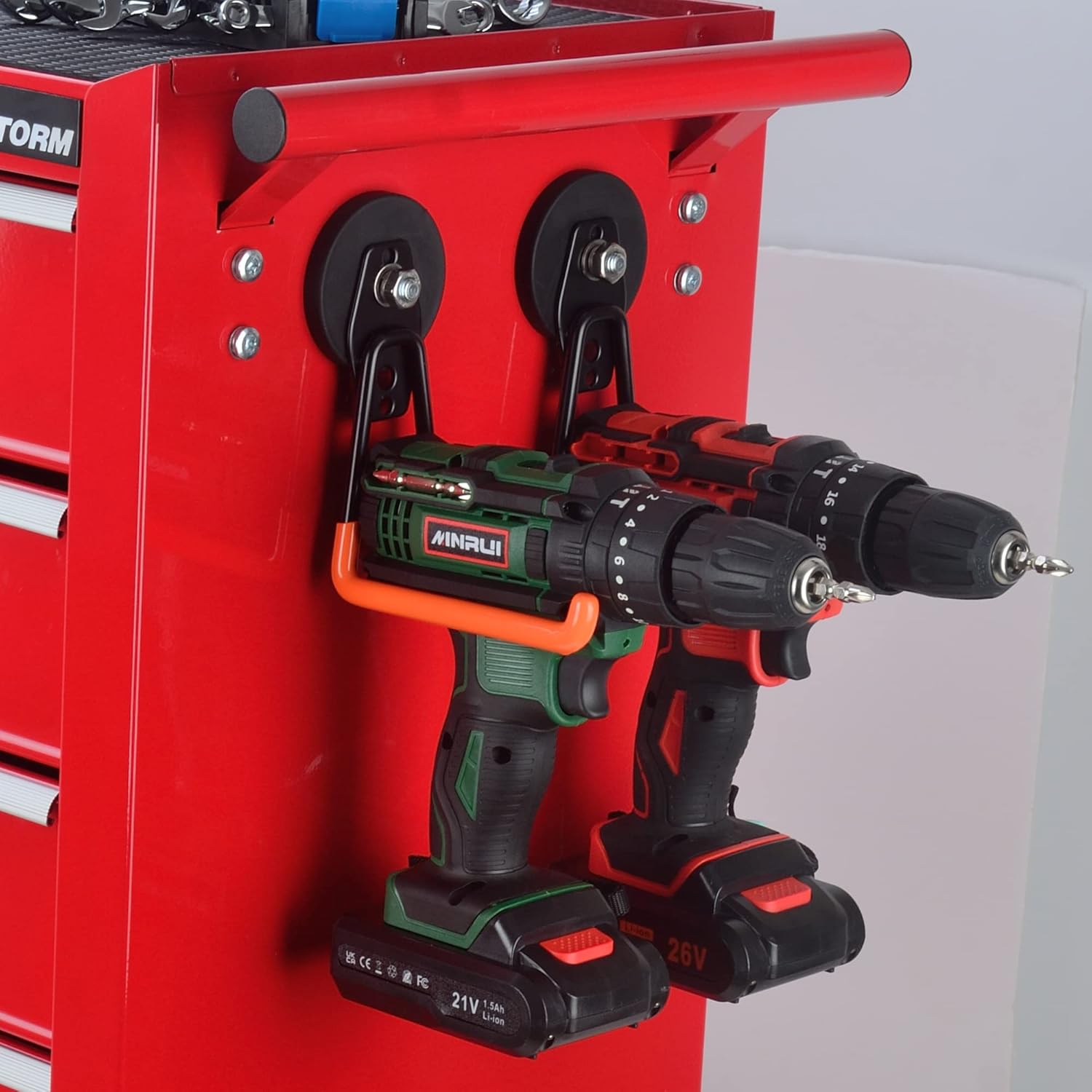 - [Magnetic Power Tool Organizer]: The double hook structure can easily support the weight and is more balanced and stable. Not only is the tool secured without worrying about items falling off or wiggling on the hook, but multiple items can be placed