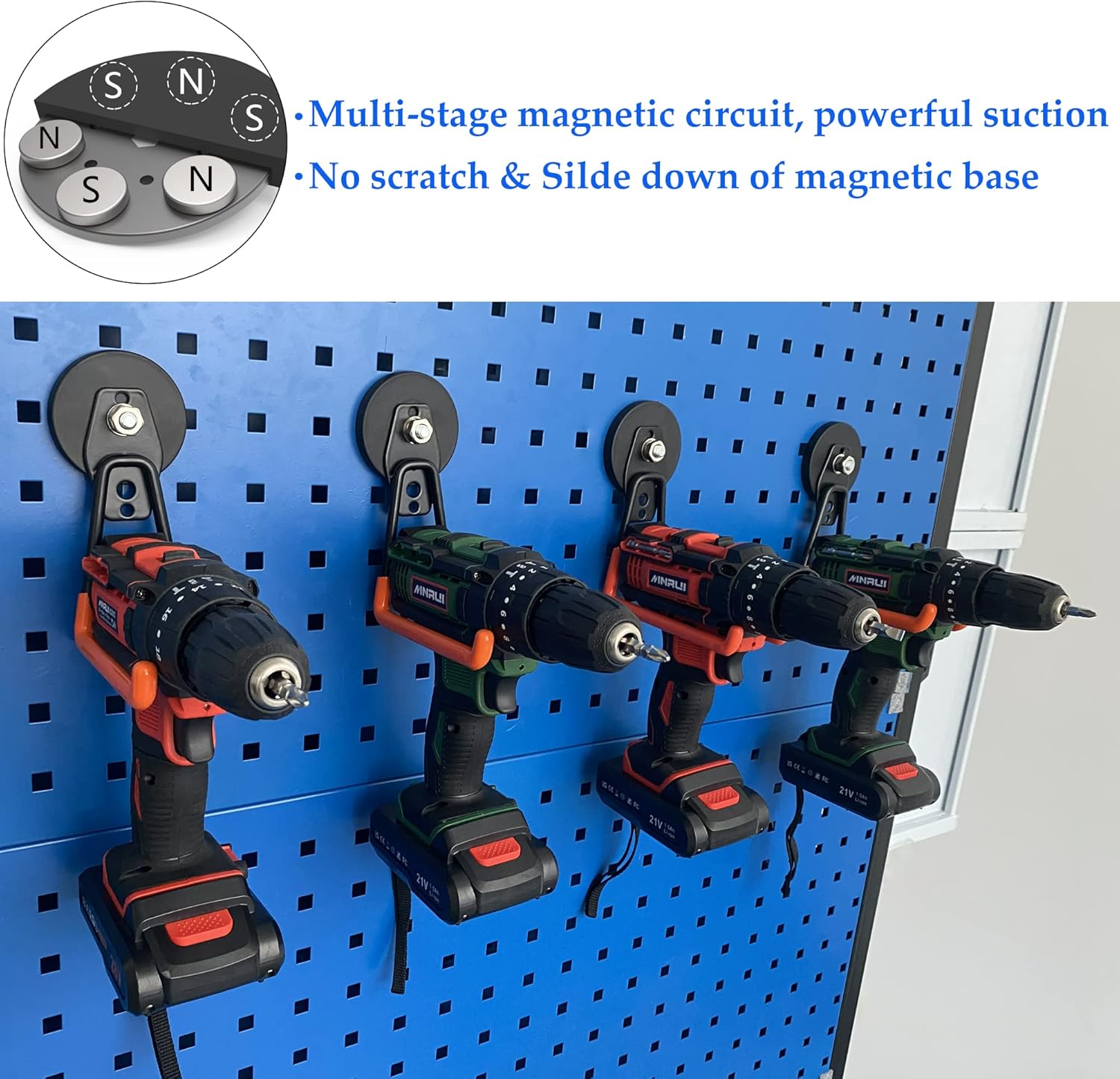 - [Power Drill Tools Magnetic Hooks]: The rubber coated magnet is stable and non-slip, protecting the surface from scratches or damage, it's the best partner for your garage,barn,basement,workshop,etc