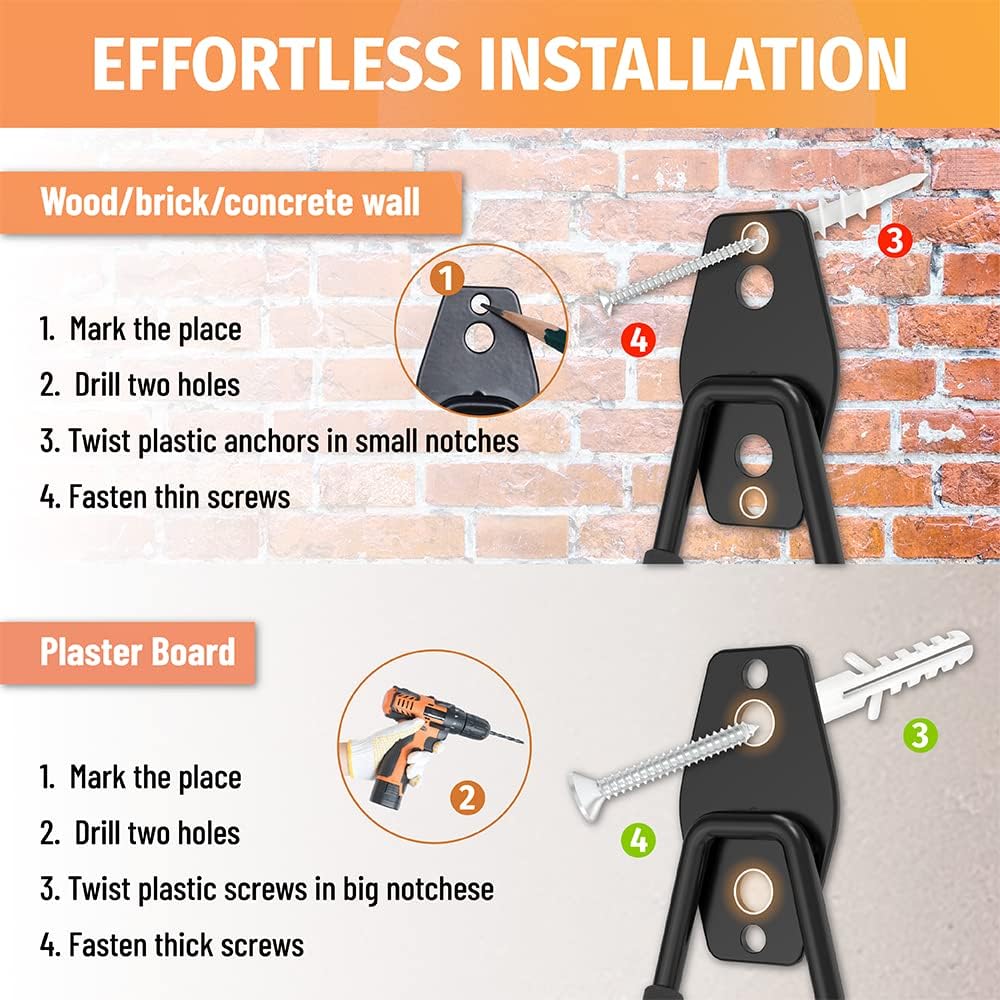 - [Multi-application] We adapt different anchors for the garage hooks to fit various walls. You can wall mount the garage wall hooks on brick/ concrete/ wood wall or plaster board as your storage need.