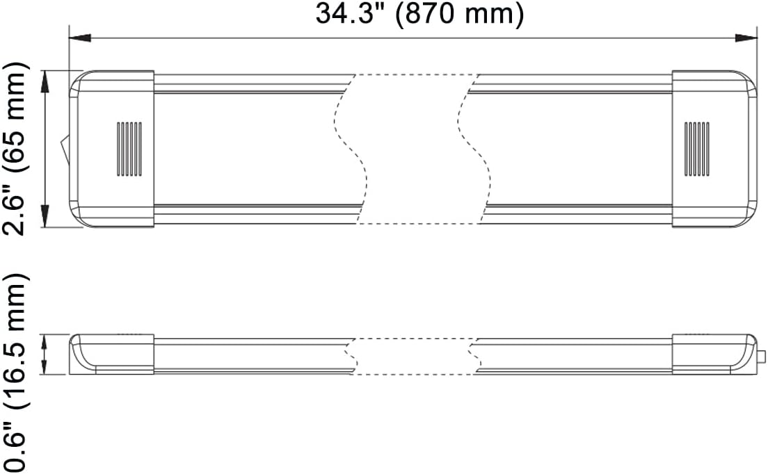 LED Interior Utility Light Fixture 34.2" x 2.6", High Lumen-Output Low Current Draw Energy Efficient, Frosted Lens 6000K Cool-White Even Diffused Beam, On/Off Rocker Switch 12V-24V DC, 1-Pack