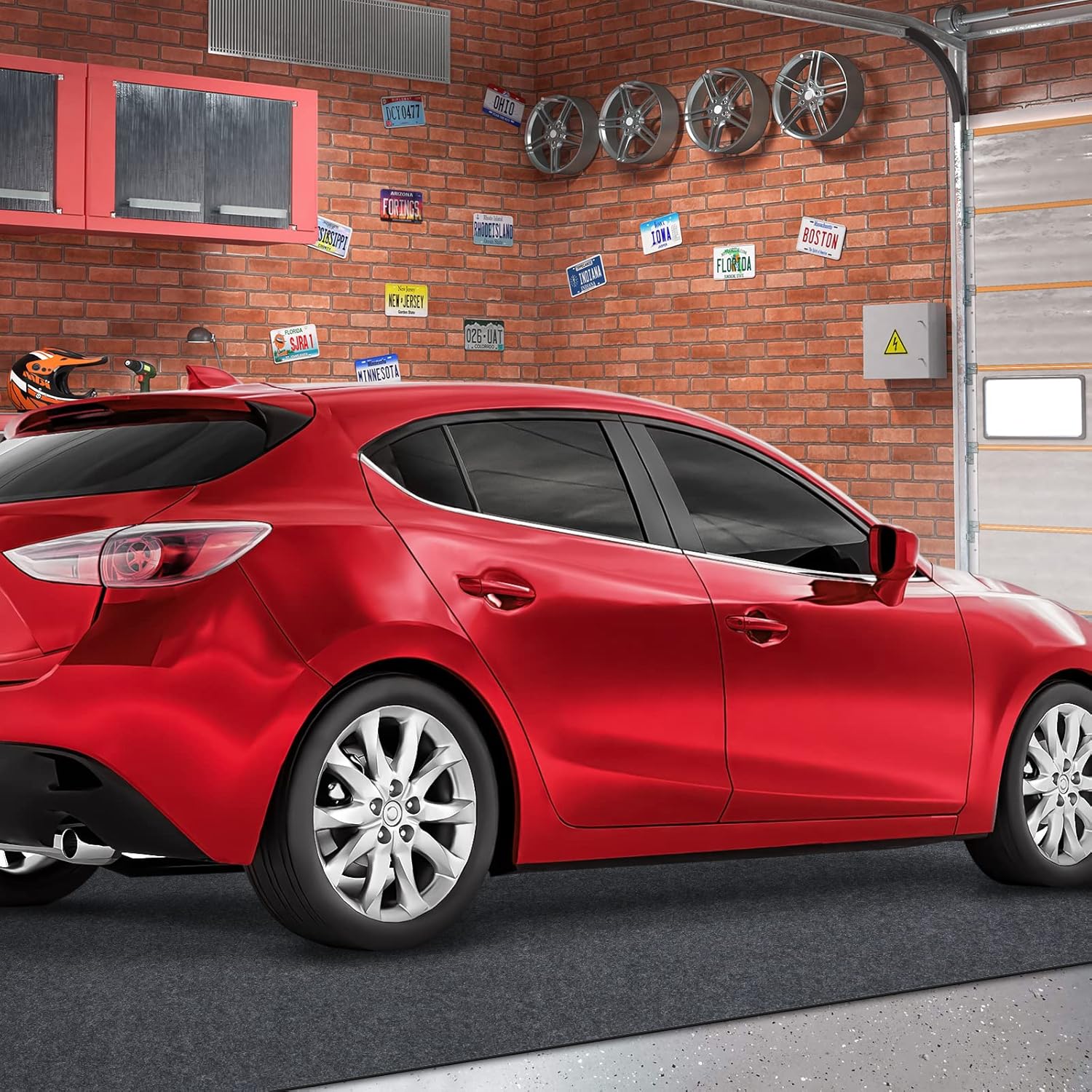 - Trim and Install: Our mat is the perfect size for motorcycle, car and your garage floor. It is easy to cut with scissors for any size to fit your space and edges won’t fray. Make sure your floor is already clean, then lay down your mat! (Wrinkles are normal due to folded packaging, but over time, the crease will disappear).