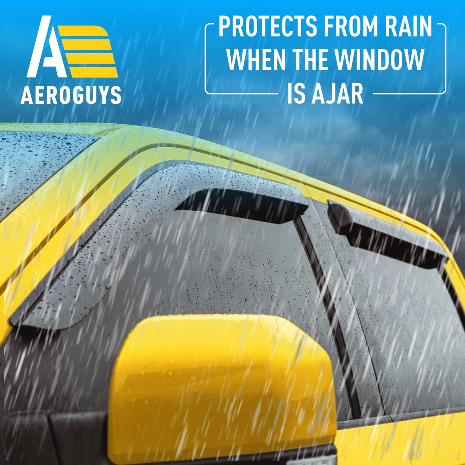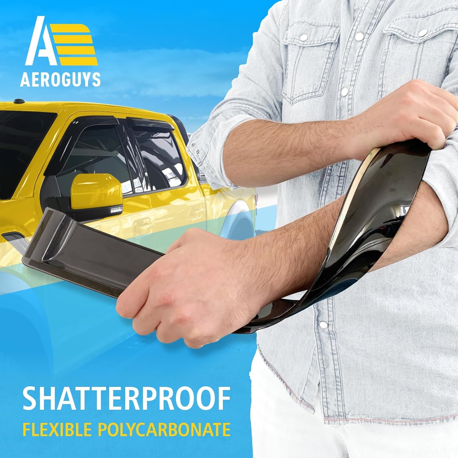 - Incredibly Durable AEROGUYS Auto Window Deflectors – They are made with strong and tough polycarbonate which is clear and scratch-resistant. They also provide UV protection making your ride more comfortable under all weather conditions.