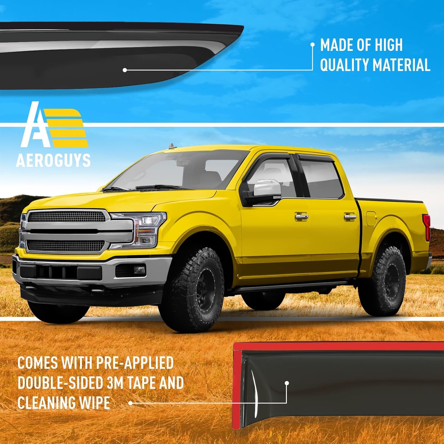 - ATTENTION!!! These high-quality automotive window rain guards CUSTOM FIT only for Ford F-150 2015-2025 SuperCrew, Ford F-150 Raptor 2017-2025 SuperCrew, Ford F-250 Super Duty 2017-2025 Crew Cab, Ford F-350 Super Duty 2017-2025 Crew Cab, Ford F-450 Super Duty 2017-2025 Crew Cab, Ford F-550 Super Duty 2017-2025 Crew Cab.