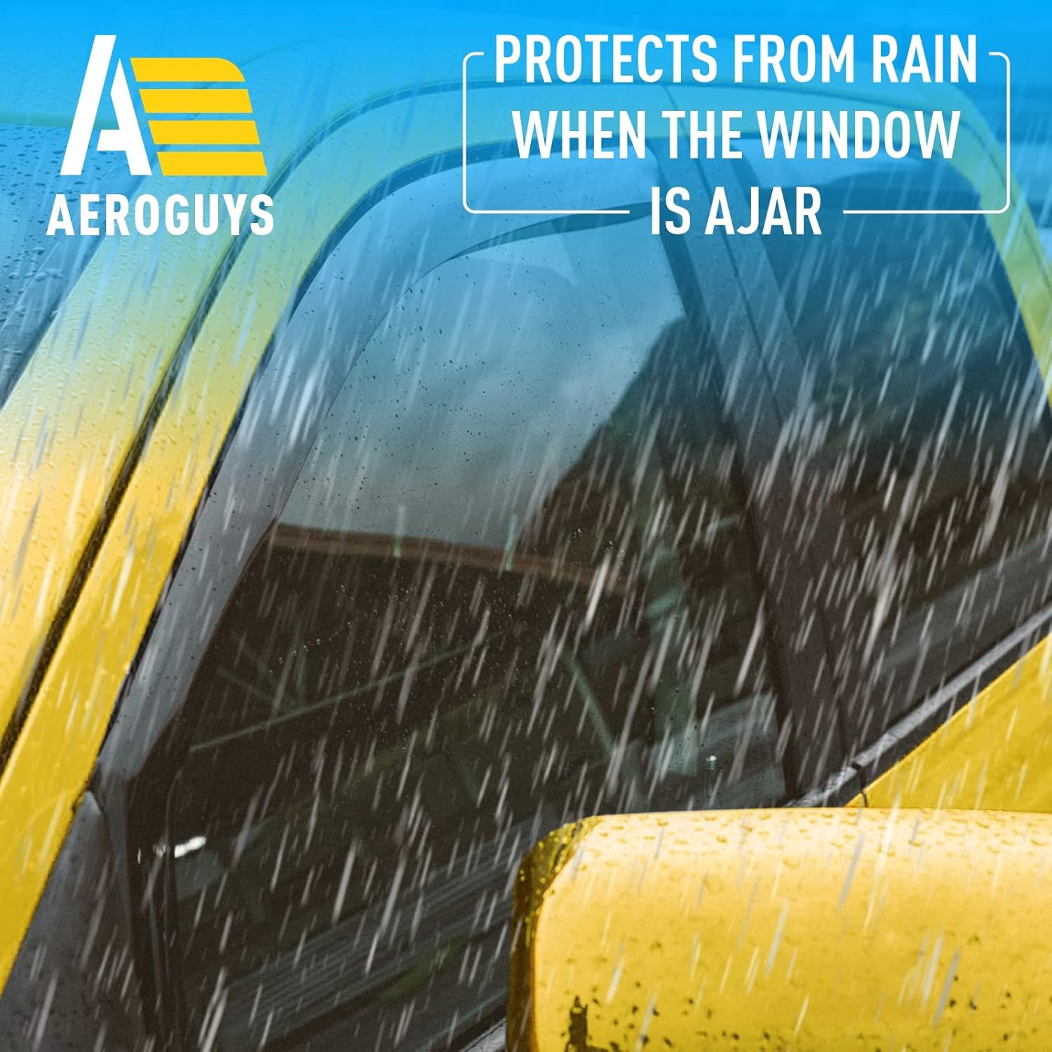 - Incredibly Durable AEROGUYS Auto Window Deflectors – They are made with strong and tough polycarbonate which is clear and scratch-resistant. They also provide UV protection making your ride more comfortable under all weather conditions.