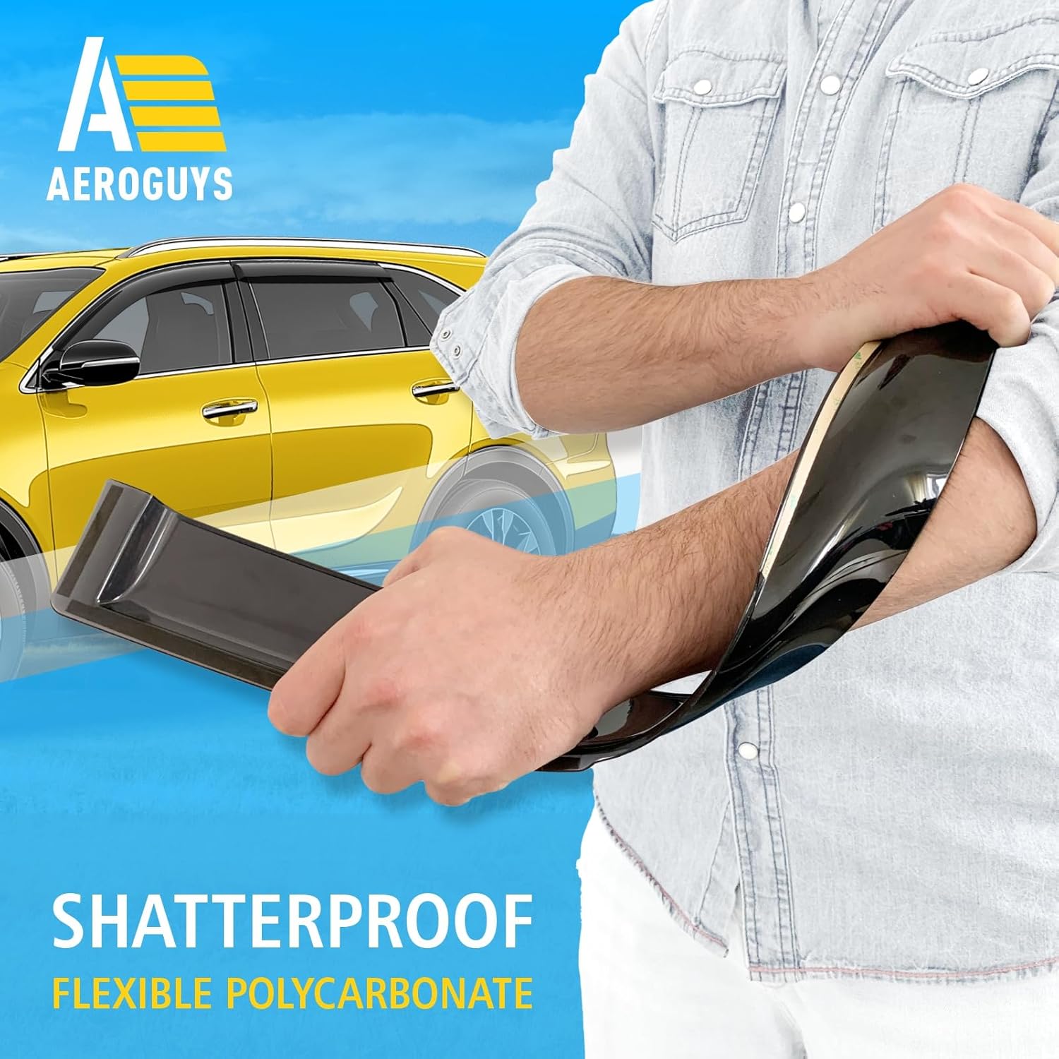 - Incredibly Durable AEROGUYS Auto Window Deflectors – They are made with strong and tough polycarbonate which is clear and scratch-resistant. They also provide UV protection making your ride more comfortable under all weather conditions.