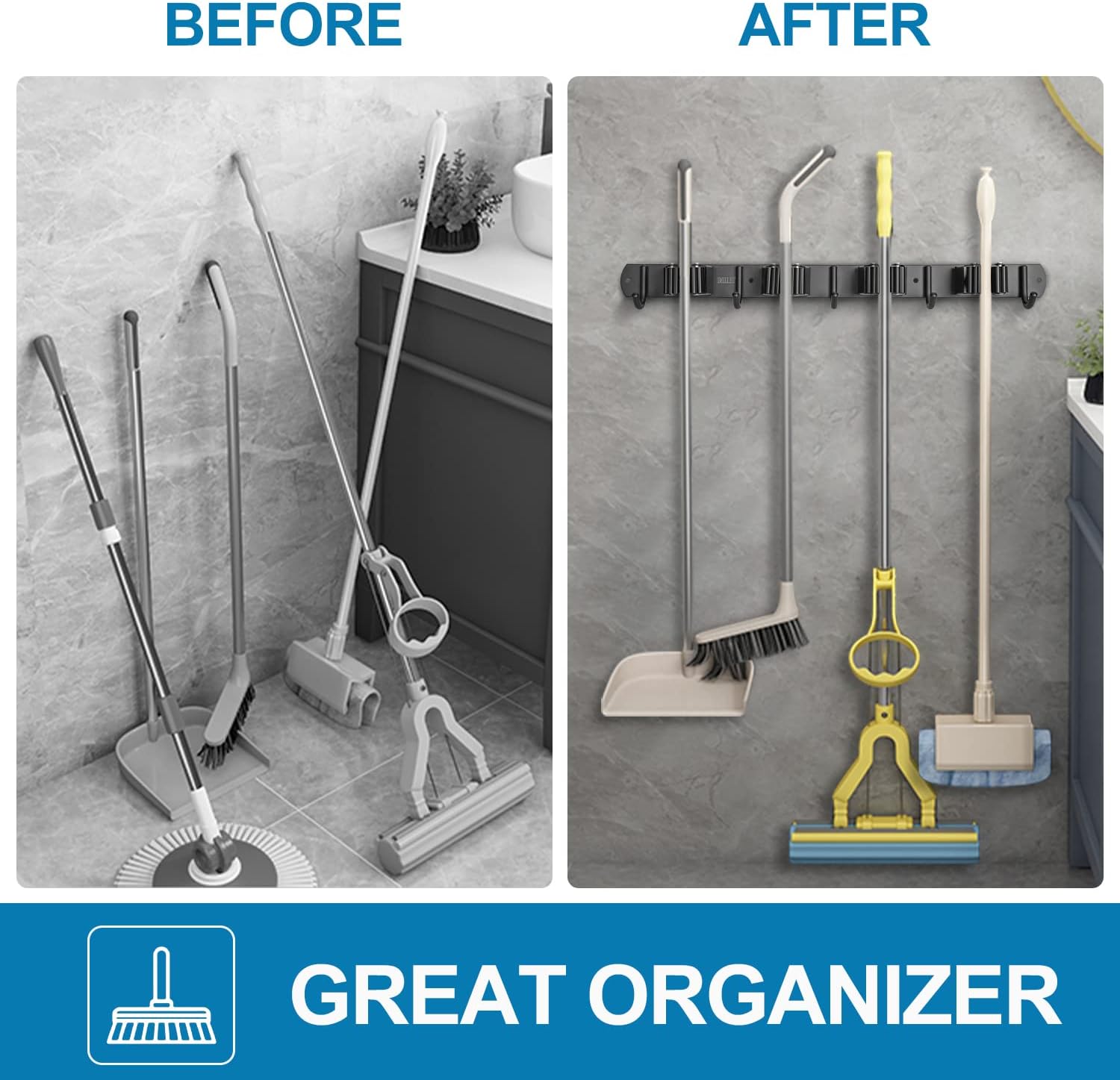 - HEAVY DUTY: Mop holder grip everything tightly and securely without slip. It can hold up to about 9 tools in total. Keep your place cleaned up and keep things organized