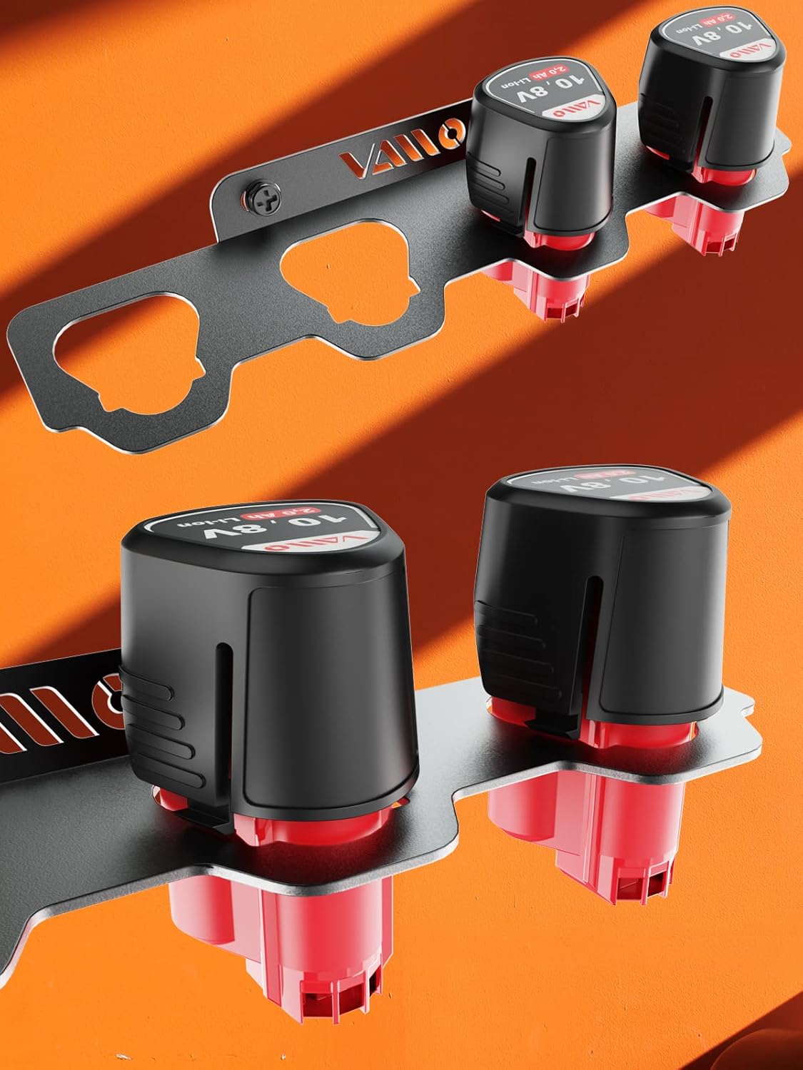 - PERFECT BATTERY STORAGE RACK: This Battery Holder is fully compatible with Milwaukee M12 12V batteries, and can firmly fix your battery pack without dropping. It can store four batteries at the same time with enough space between them.