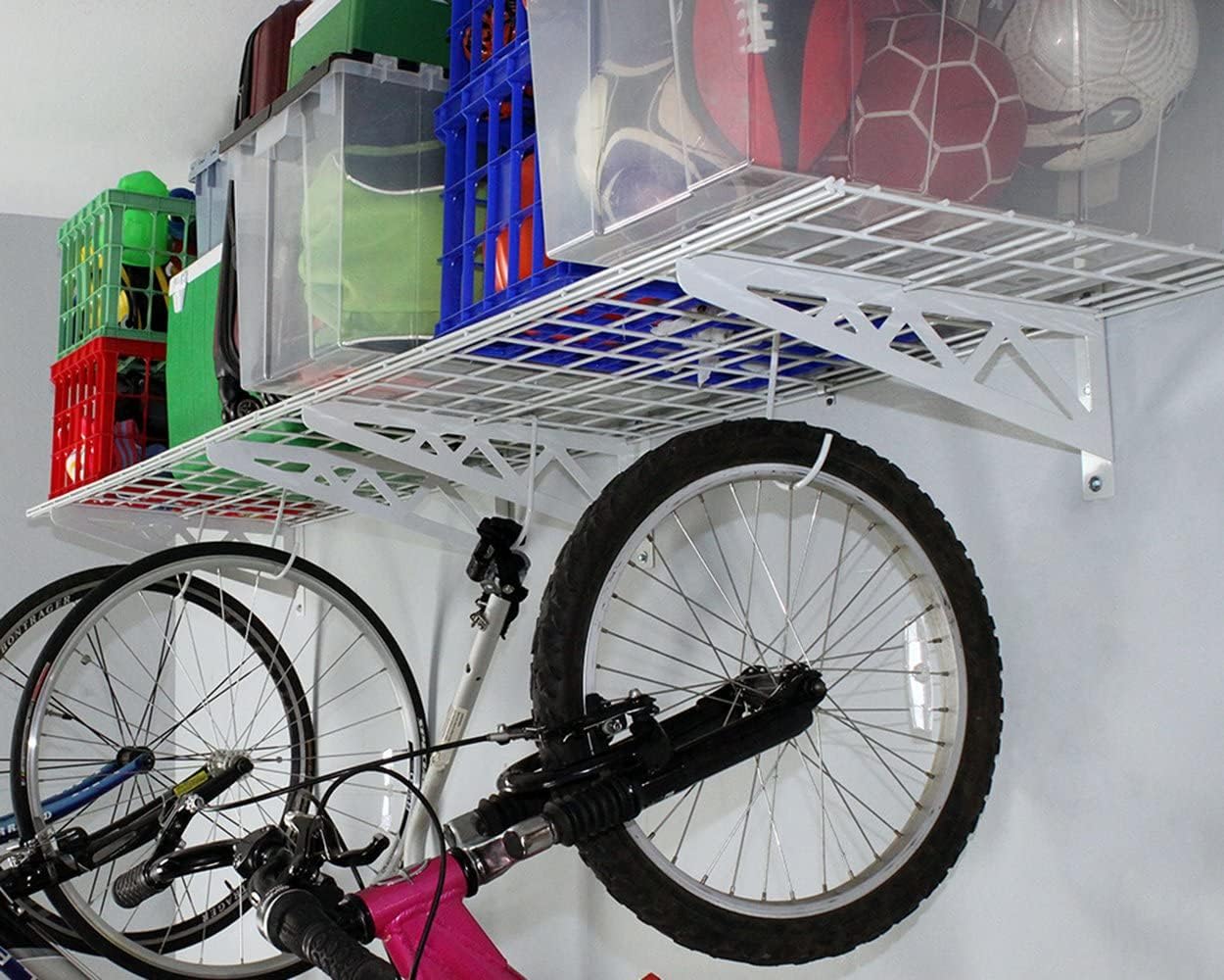 - CONVENIENT STORAGE SPACING: Innovatively designed to provide a clean and neat space for your utilities and accessories, our wall-mounted garage shelving units will save you space and help you organize items like golf clubs, storage bins, sports accessories, or bicycles.
