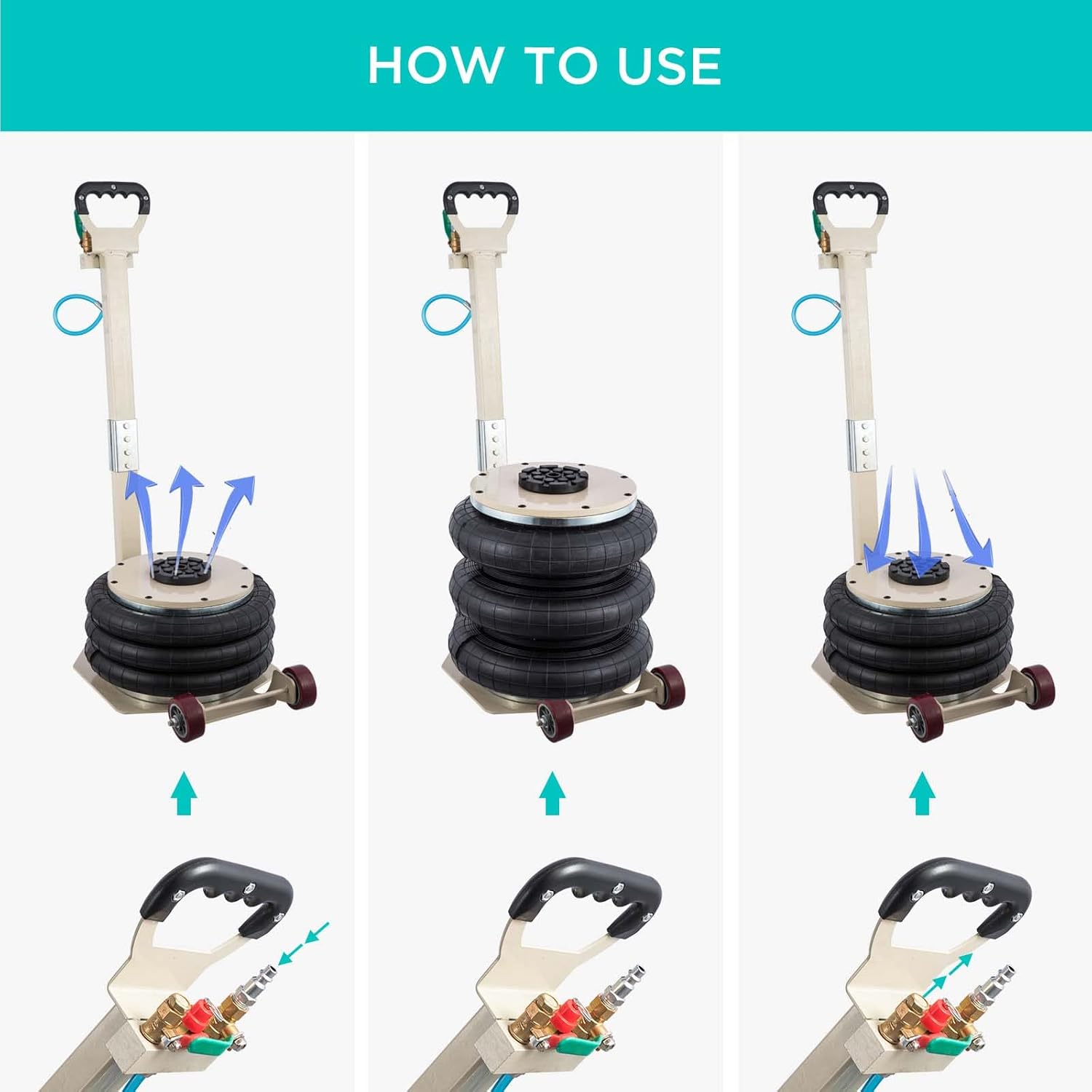 CXRCY 5 Ton Air Jack for Cars & Trucks - 11000LBS Capacity Pneumatic Airbag Jack with Adjustable Long Handle, Fast Lifting up to 16 Inch for Cars,Trucks(White Triple Bag Air Jack)