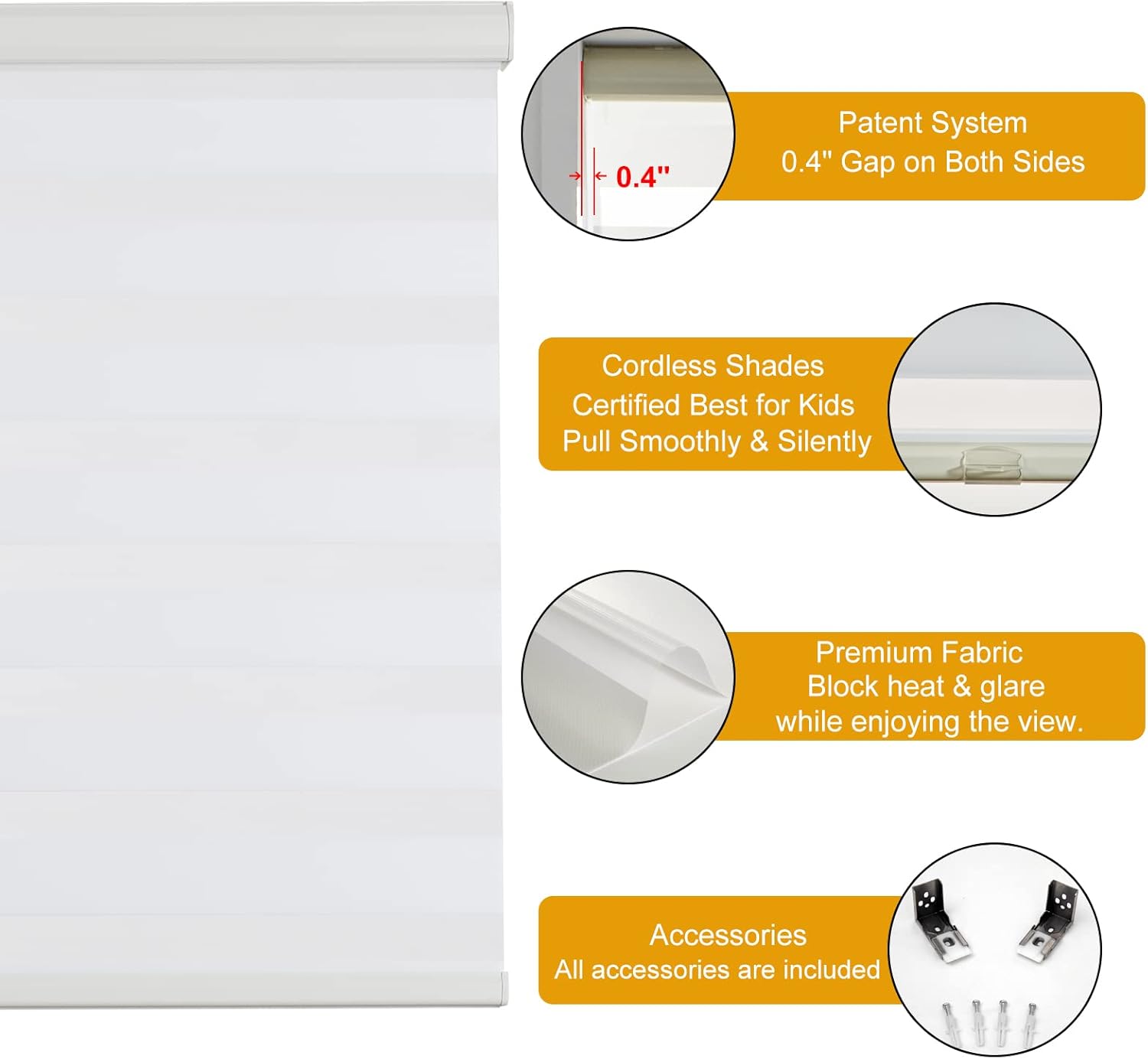 Persilux Cordless Zebra Blinds for Windows Free-Stop Window Blinds (34" W X 64" H, Cream) Dual Layer Light Control for Day and Night, Light Filtering Sheer Shades for Home, Easy to Install