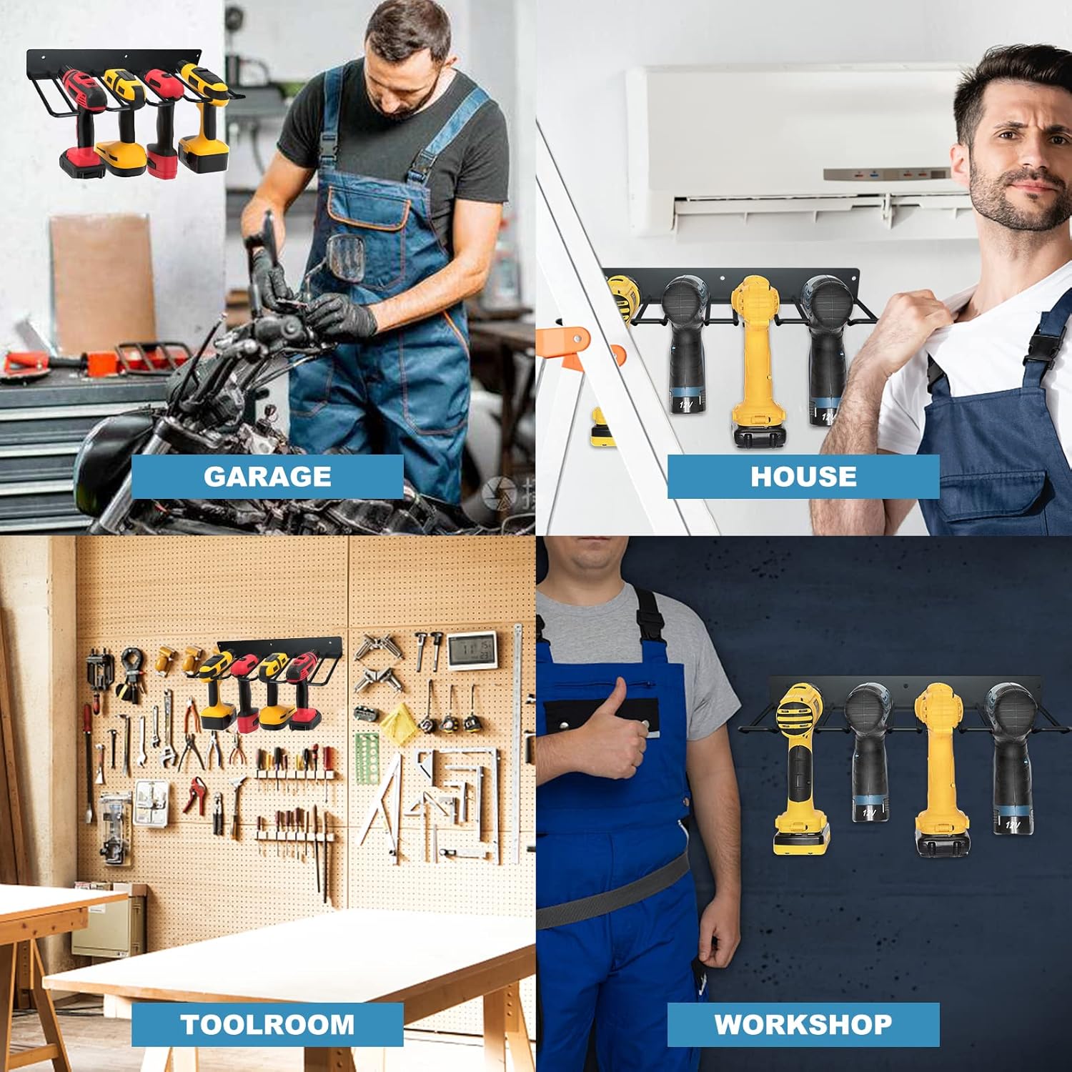 Electric Drill Storage Rack, 2PCS Heavy Duty Metal Wall Mounts, Holds 4 Drills, Compact Storage for Garage or Workshop
