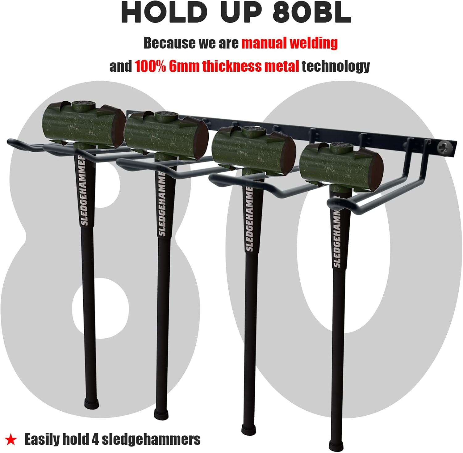 - Ultra Sturdy: Made by 6mm manual welding technology. Up to hold 80Lb that we had test, even you hold 4 sledgehammer.