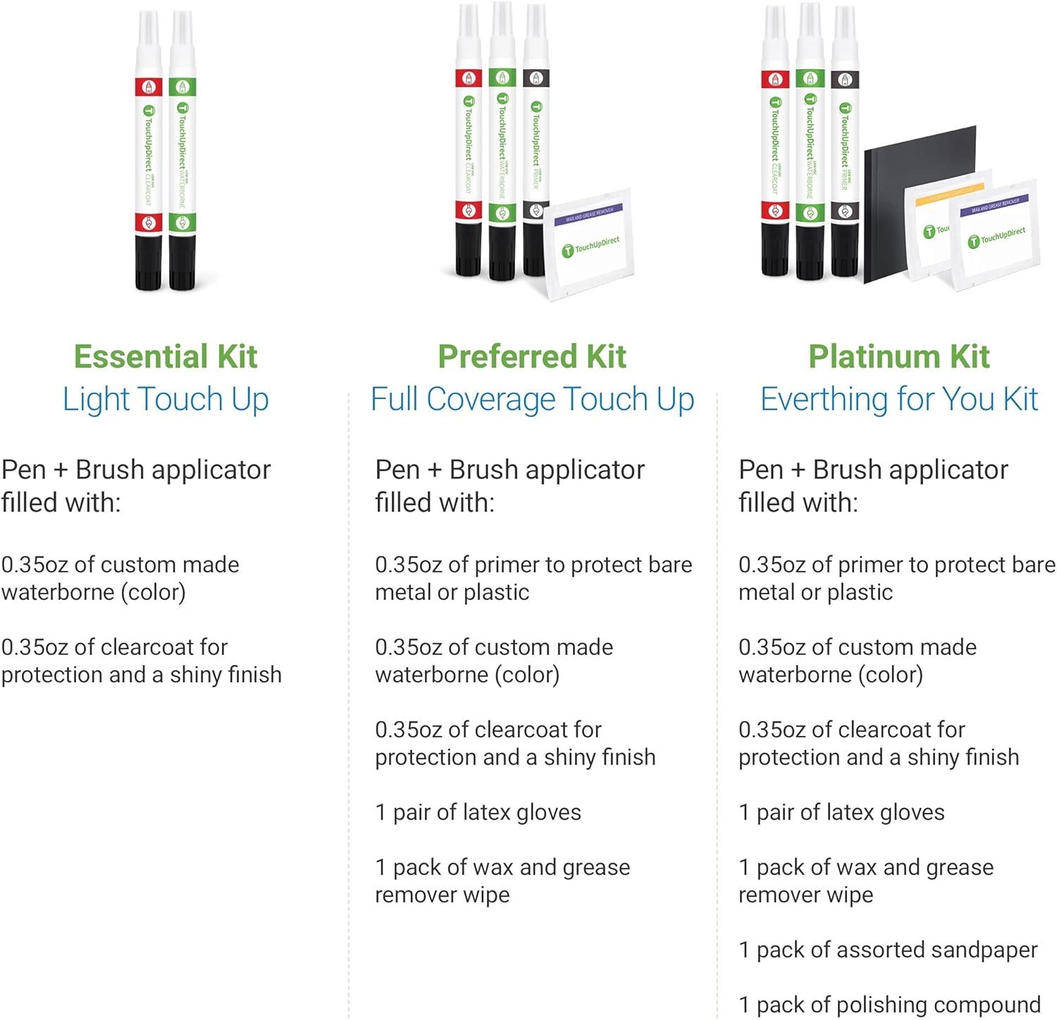 - Filled with 0.35 oz. of our low-VOC environmentally conscious touch up paint.