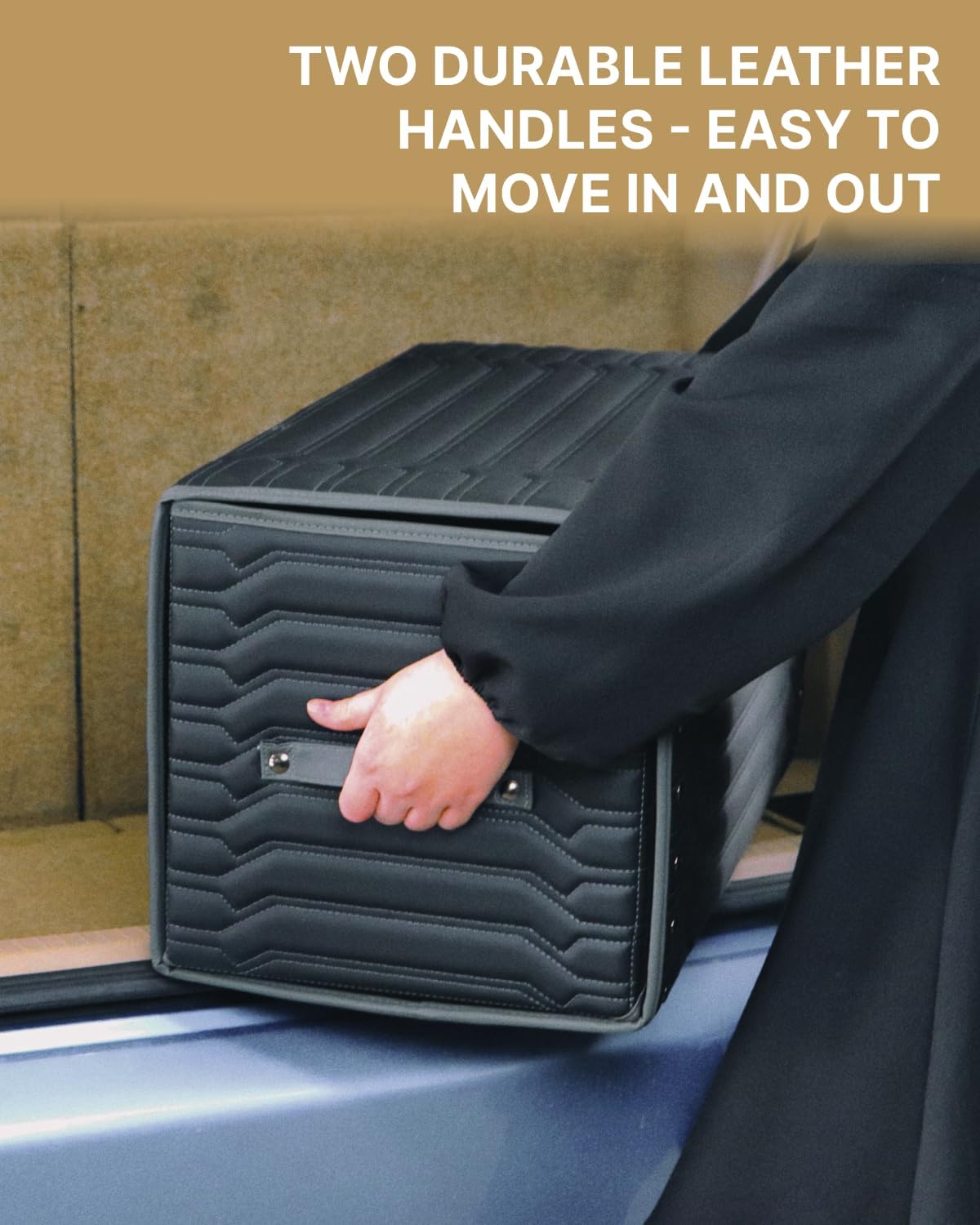 - BUILT FOR HEAVY LOADS . 5-layer eco-leather, waterproof 210D Oxford, and solid PVC panels make it a trunk organizer for truck bed or cargo bins for back of SUV that stay rigid under weight. ADD TO CART NOW!