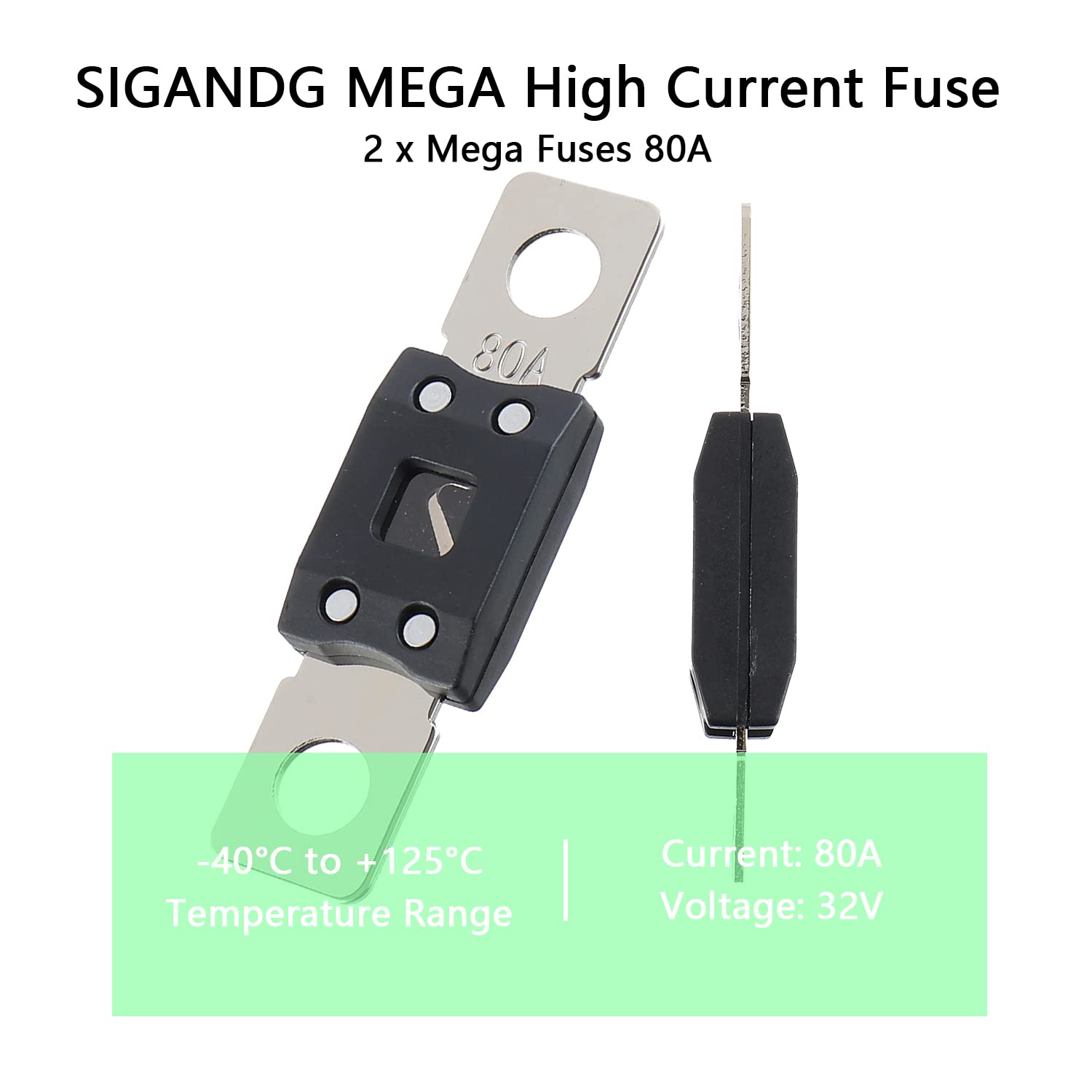 80A MEGA High Current Fuse - 80 Amp Bolt-on Fuse for Cars, Trucks, Construction Vehicles, Buses, Caravans (2 Pcs)