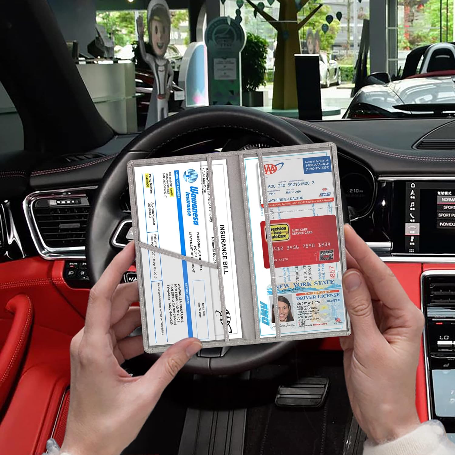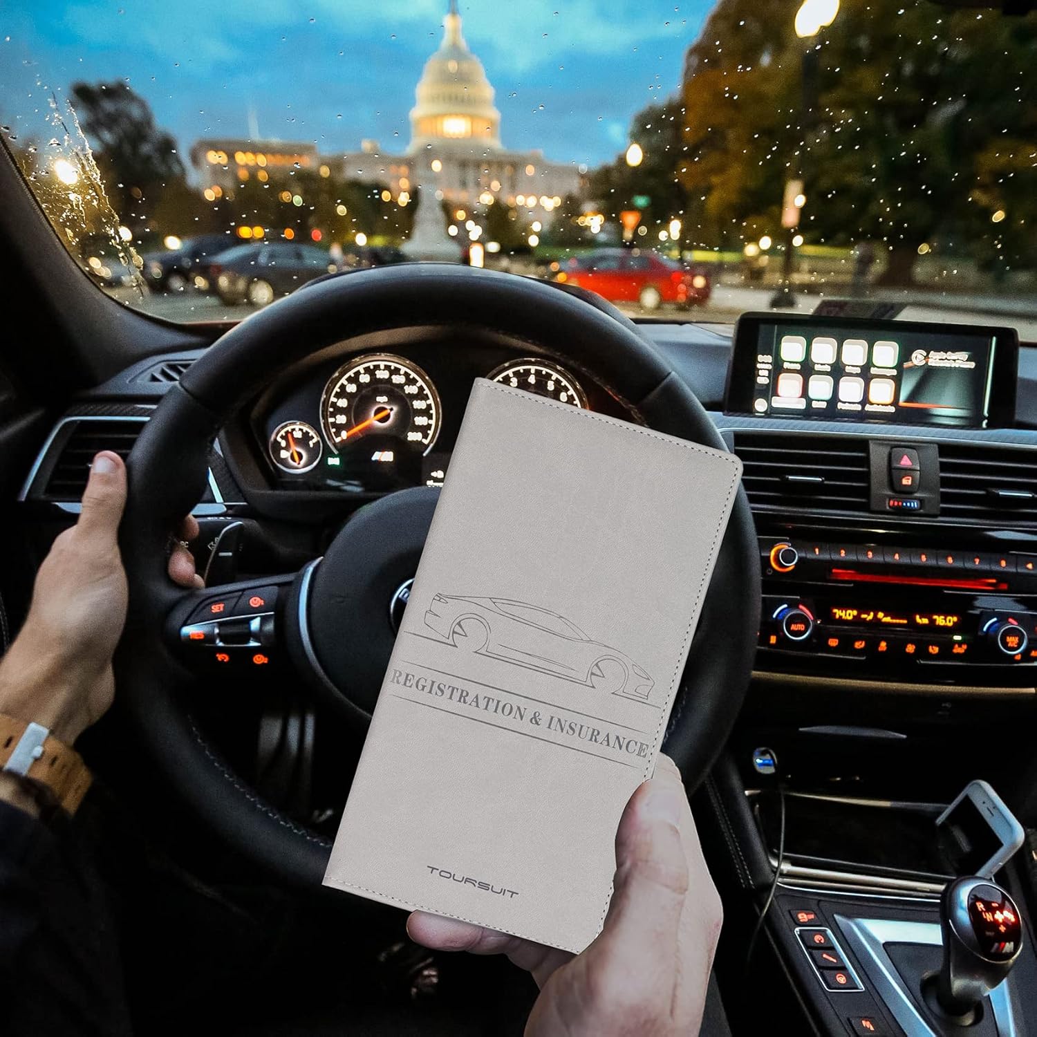 TOURSUIT Car Registration and Insurance Card Holder, Vehicle License Document Glove Box Compartment Organizer, Interior Car Accessories for Women Men Teens (Grey)
