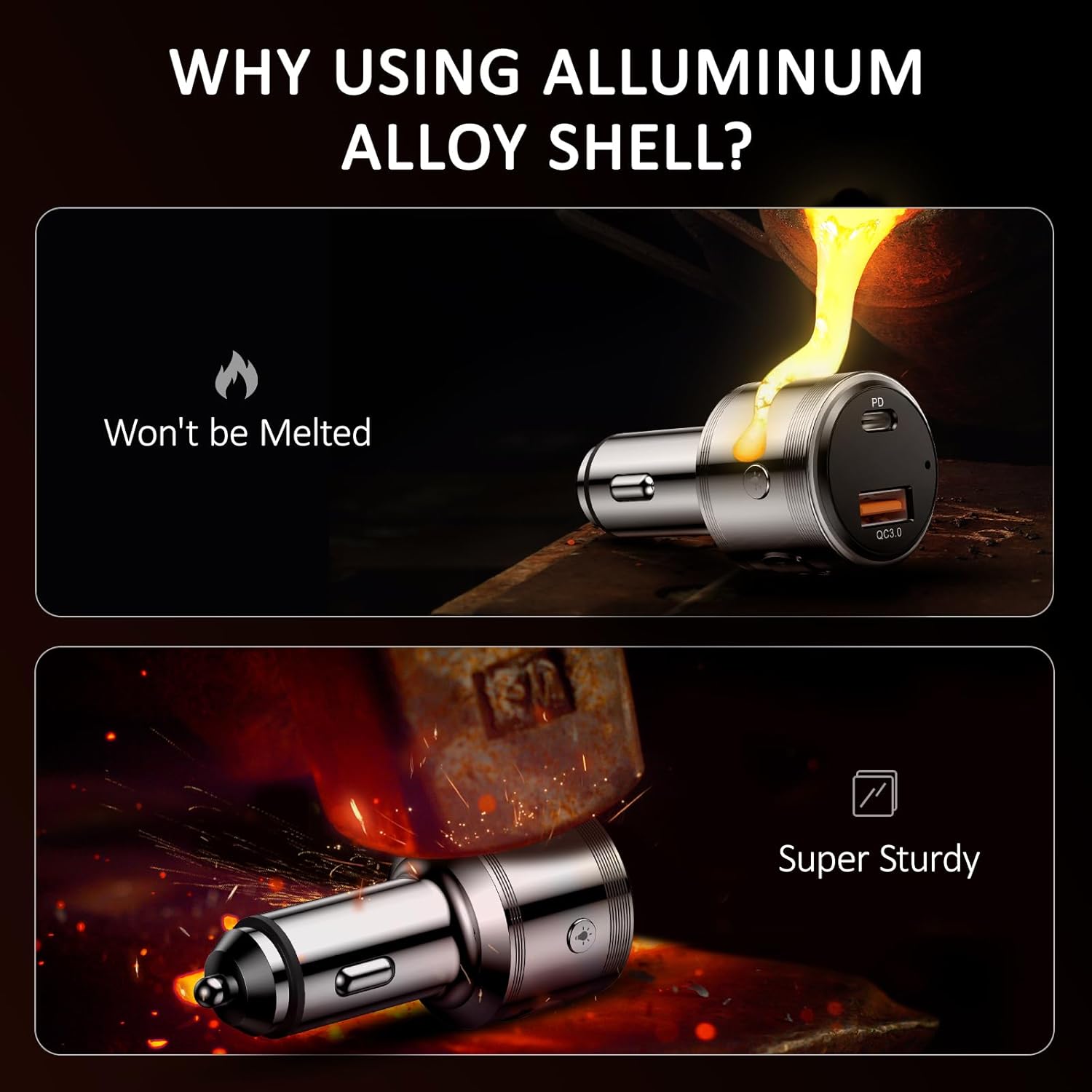 - All Metal: The 1-piece zinc alloy used to make the car bluetooth adapter. Because of its improved heat dissipation, the components won't overheat, disconnect the Bluetooth, or catch fire. It is textured, of high quality, and long-lasting due to the increased quality of its internal components