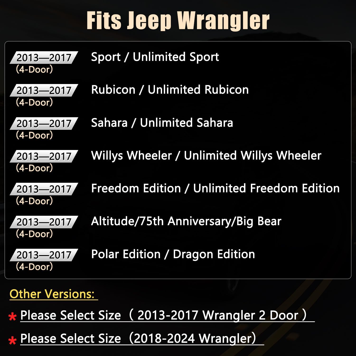 - 【CUSTOM FIT】 - A full set of seat covers customized according to the original car seat size 1:1, which will fit Wrangler JK 4-Door 2013 2014 2015 2016 2017 like a glove.