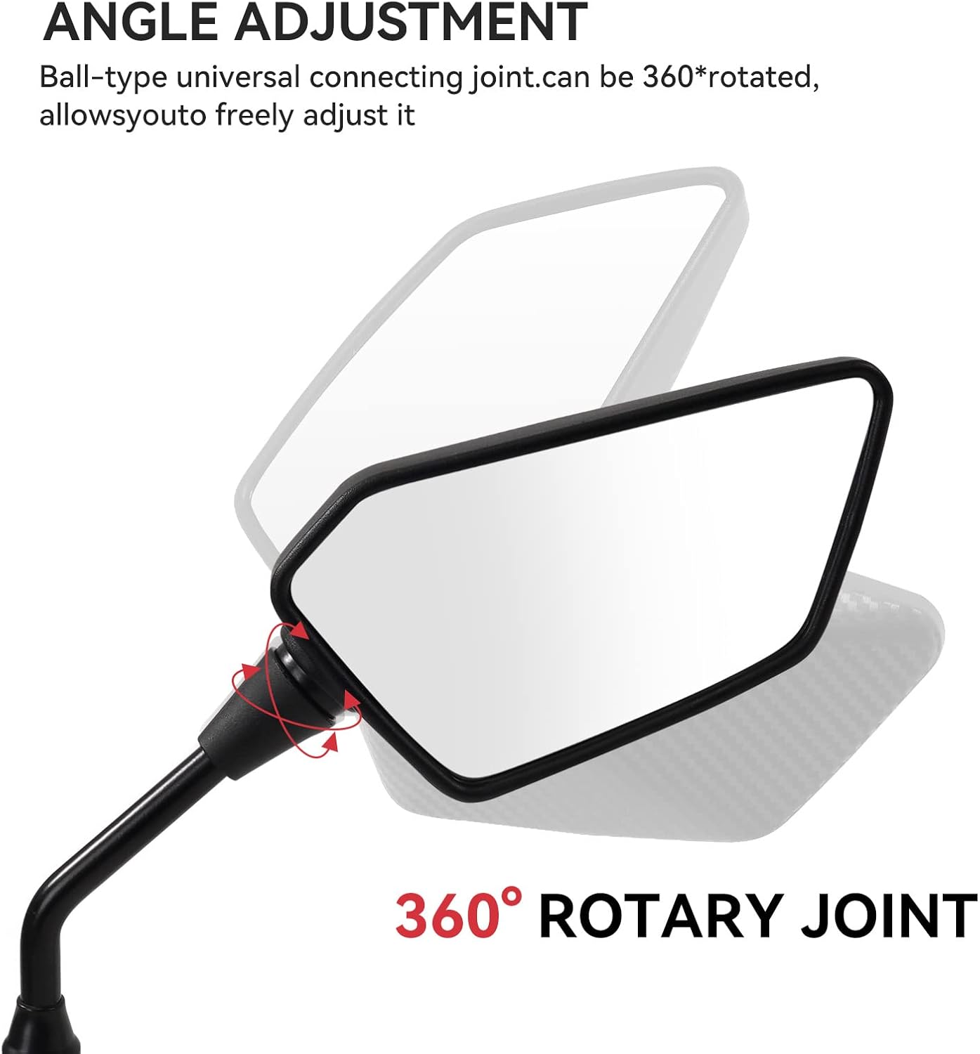 - [Stable and Adjustable]This atv side rear view mirrors has 360 degree adjustment function, can help you find the most suitable angle;Our mirror has shock protection and won't shake or loosen while driving,make sure you have no worries