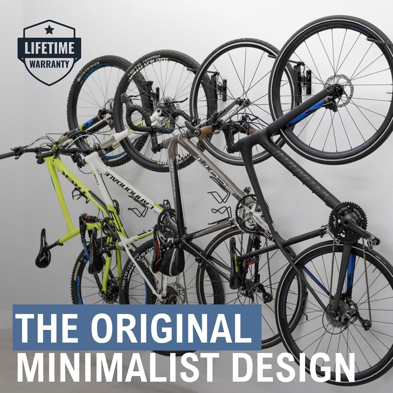 • WALL-MOUNTED BIKE STORAGE – Reclaim your garage, shed, or apartment space with this space-saving vertical bike rack. Designed to mount securely to wall studs, each rack stores one bicycle flat against the wall, making it ideal for indoor bike storage in tight spaces. Compatible with a variety of bikes including road bikes, e-bikes, folding bikes, and more. Fits tires up to 2.6" wide and up to 29" in diameter.