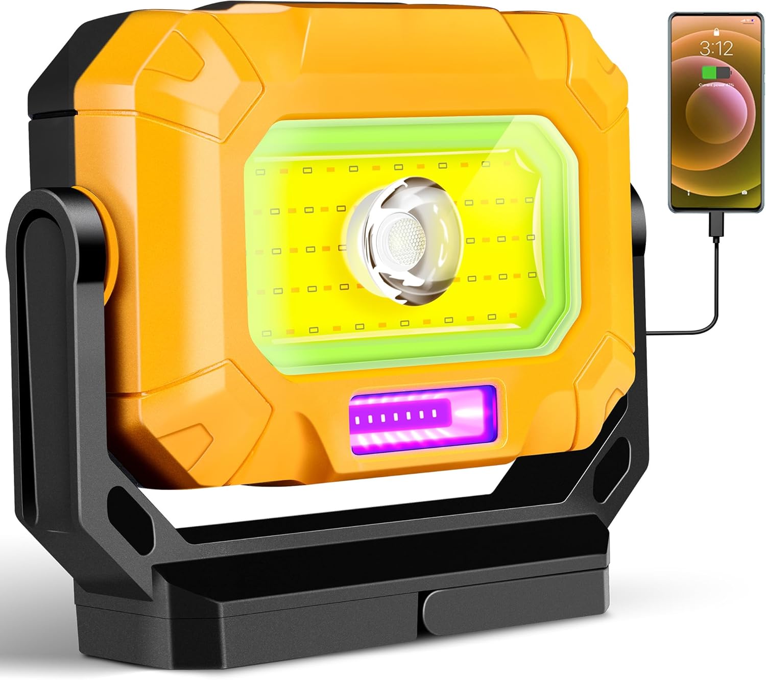 - 【Glow in Dark】The reflector of a rechargeable led work light can glow in the dark. The light-emitting function in the dark can be activated after using the flashlight for a few minutes.It can be located our led work light in low-light situations, eliminating fumbling and searching when you need a light source urgently.