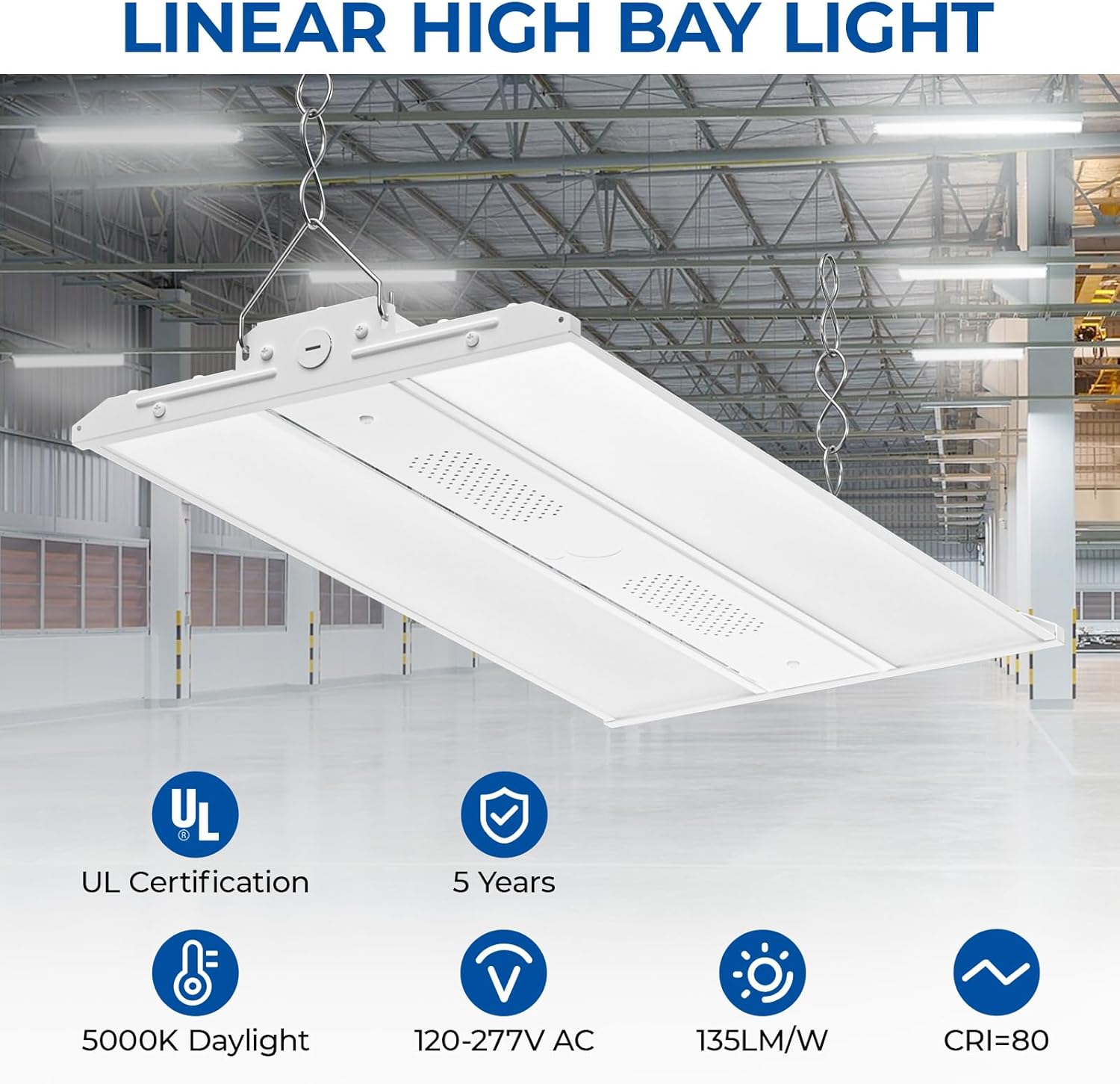 - 【Super Bright & Energy Saving:】220W led linear high bay light adopts SMD 2835 lamp bead, providing 29700LM super bright cold white light, illuminating the area as if it were daytime. This is an amazing 135LM/W!Save more than 80% of the electricity bill.