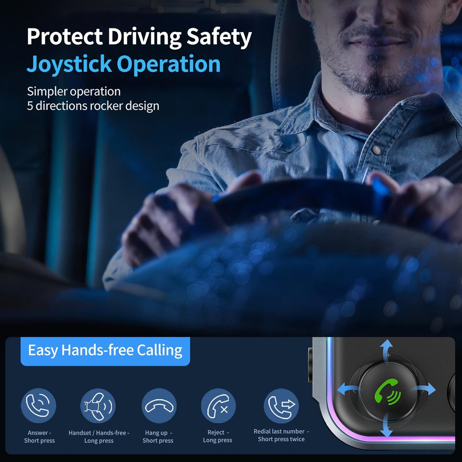 - ✅【Secure Joystick Design & Hands-Free Calling】This fm transmitter selects user-friendly analog joystick controller, superior to competitor' usual rotary switch, which simplifies the whole operation by simply pulling the stick, saving the trouble. Hands free function ensuring driving safety, answer/reject/hand up/recall all in One key.