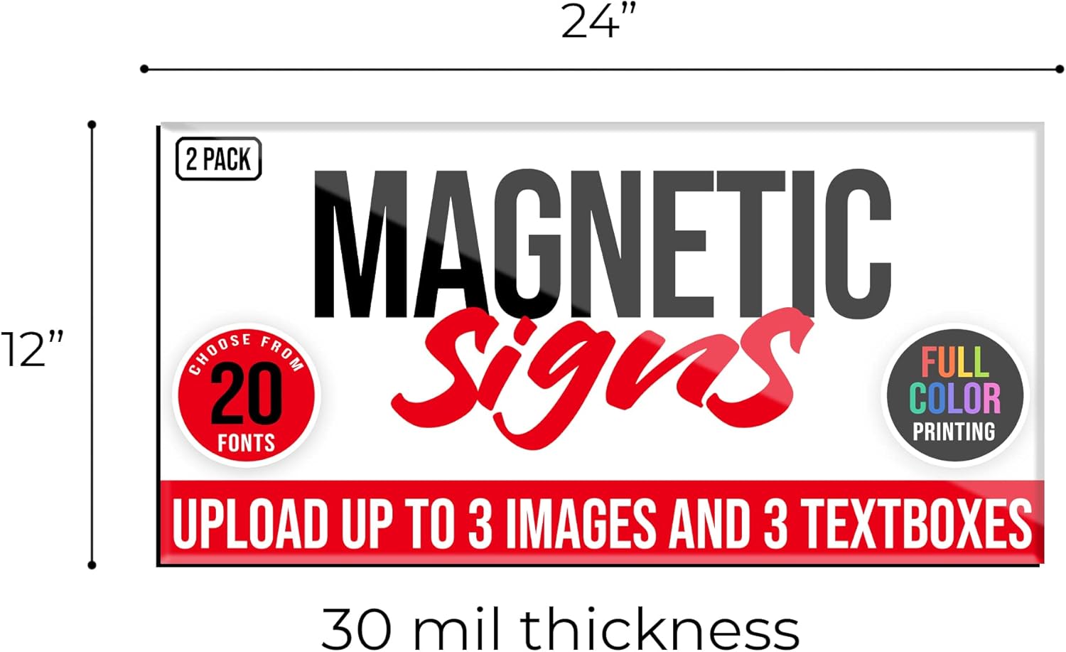 - CUSTOM CAR MAGNET - Promote your business on the go with our 12"x24" custom car magnets. Personalize with your logo, text, or design. These magnetic signs are great for branding cars, trucks, trailers, and storefront doors.