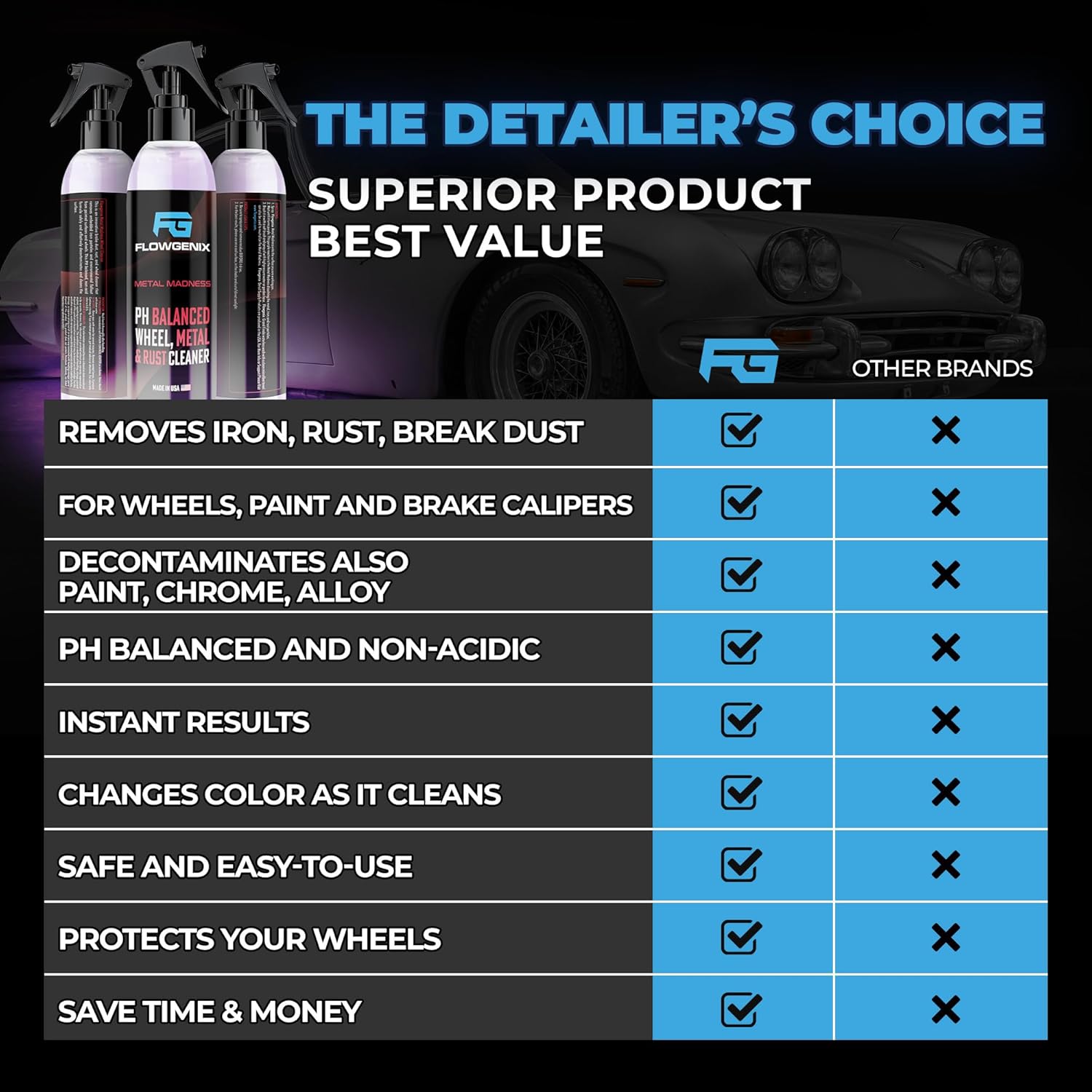 - ✅ RUST AND BRAKE DUST REMOVER: Metal Madness is an all-new iron, brake dust, and car rim cleaner. It dissolves and removes embedded iron particles, environmental fallout, dust, and grit from painted surfaces and wheels caused by braking.