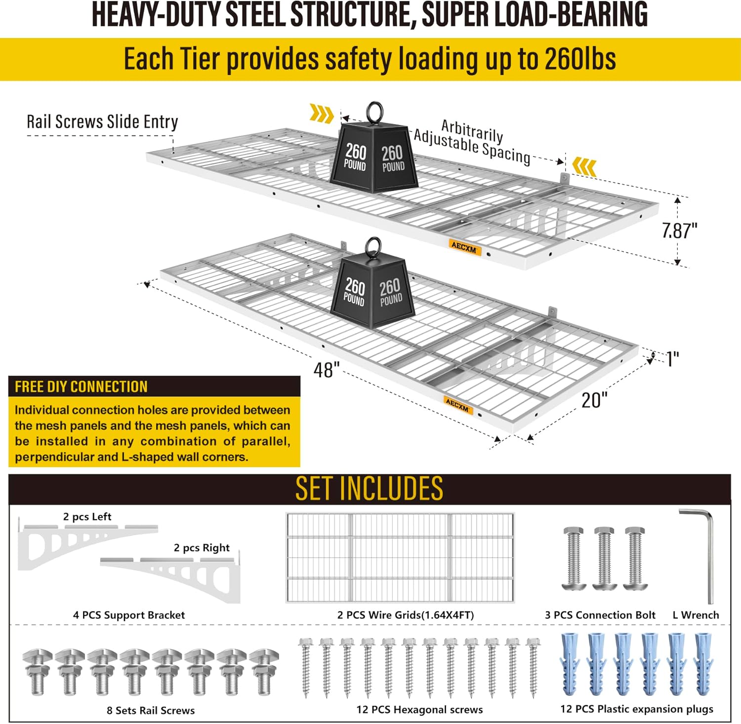 - Customer Support: Aecxm offers full after-sales service to protect your purchase. Contact us anytime for assistance. (Note: For brick or concrete walls, use expansion anchors to securely fasten the heavy duty wire shelving after drilling.)