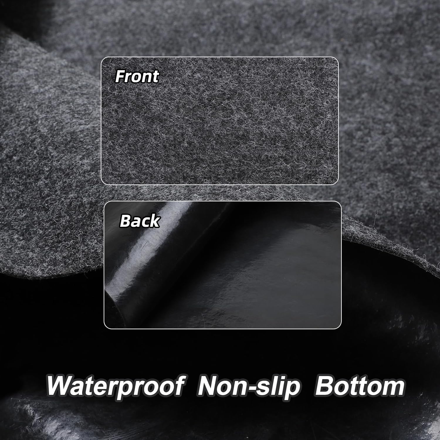 - 【Absorbent material and Watherproof backing】This parking mat absorbs liquid and moisture. And the waterproof layer can prevent liquid from saturating and prevent them from damaging or soiling the floor.It will not be penetrated by battery acid and petroleum products, slide-resistant.