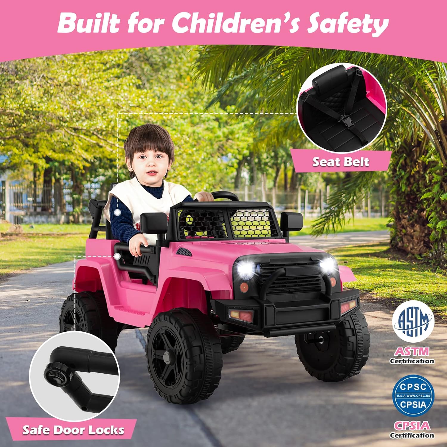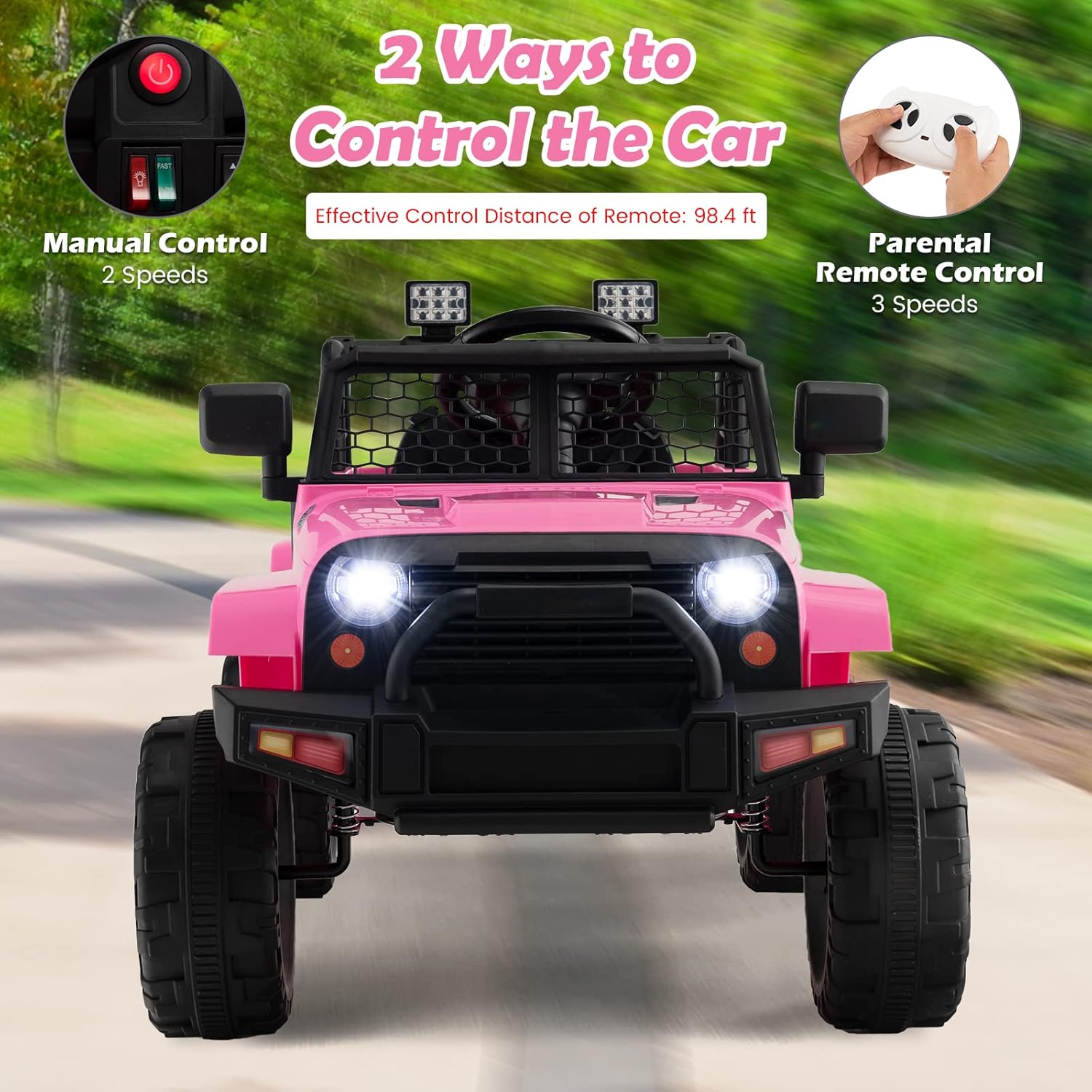 Costzon Ride on Car, 12V Battery Powered Truck Vehicle with Remote Control, Spring Suspension, Headlights, Music, Horn, MP3, USB & Aux Port, Gift for Boys Girls, Electric Car for Kids (Pink)