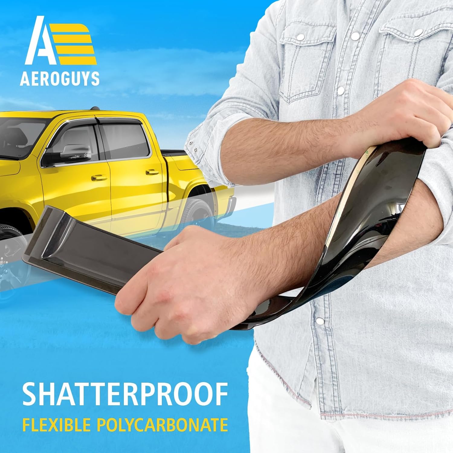 Extra Durable Window Deflectors Chrome Trim Tape-On Window Visors Rain Guards Fit for Dodge Ram 1500 2019-2025 Crew Cab, Sun Visors, Wind Vent for Shades, Exterior Car Accessories - 4pcs. AG0178