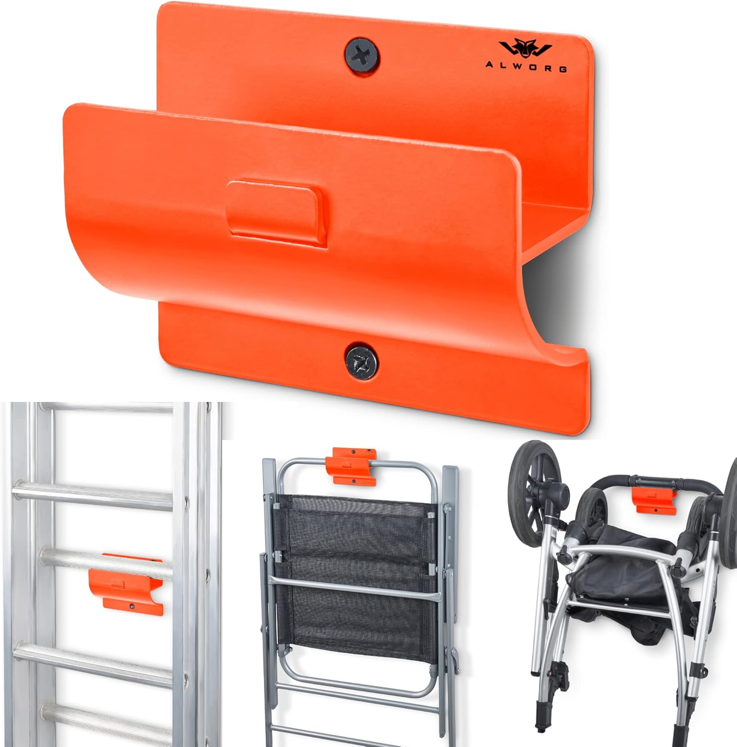 Orange Garage Storage Hooks - Heavy Duty Ladder Wall Mount, Wheelbarrow Hanger, Tool Holder, Hanging Brackets for Ladders, Folding Chairs