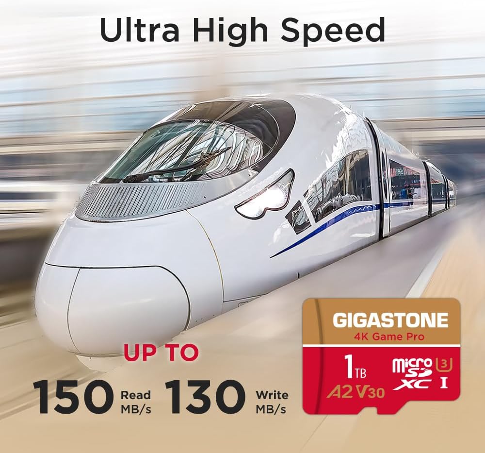 [5-Yrs Free Data Recovery] GIGASTONE 1TB Micro SD Card, 4K Game Pro, MicroSDXC Memory Card for Nintendo-Switch 1, GoPro, Action Camera, DJI, UHD Video, R/W up to 150/130 MB/s, UHS-I U3 A2 V30 C10