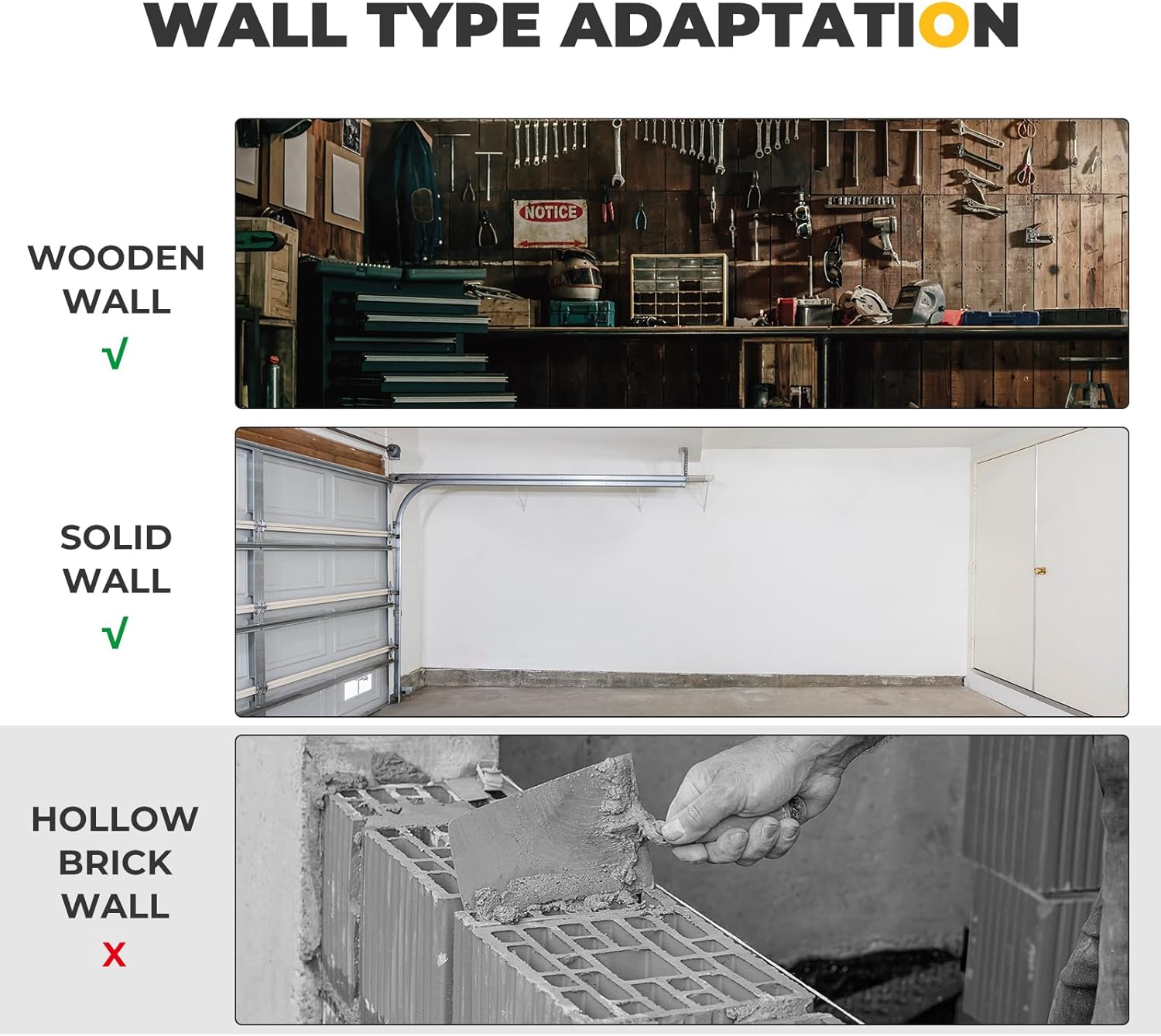 - UNIVERSAL FITMENT: Wall-mounted storage is used to store bicycle racks, tail-mounted racks, cargo carrier racks, trailer hitch ball mounts, etc., saving garage space, and protecting the bottom of your rack.