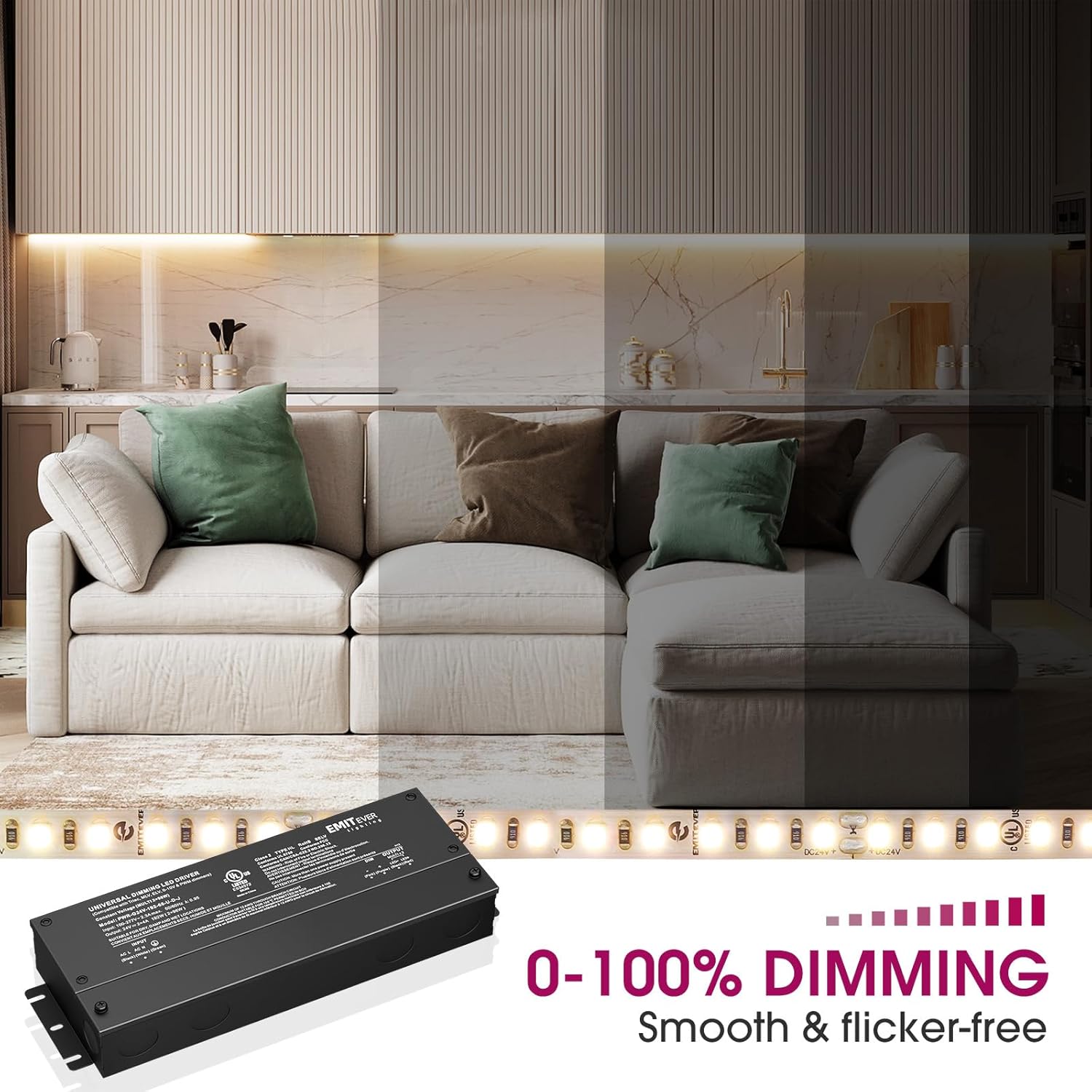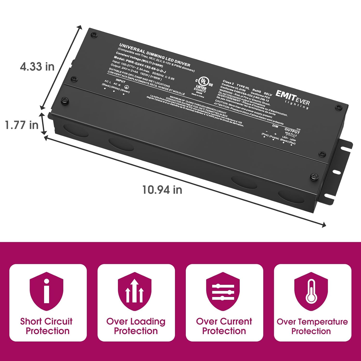 - Premium Commercial Construction: The 192W dimmable led driver is 2-Channels 24V dimmable power supply,maximum power per channels is 96W.Encased in a low profile aluminum enclosure that includes knockouts for easy installation in any low voltage application.