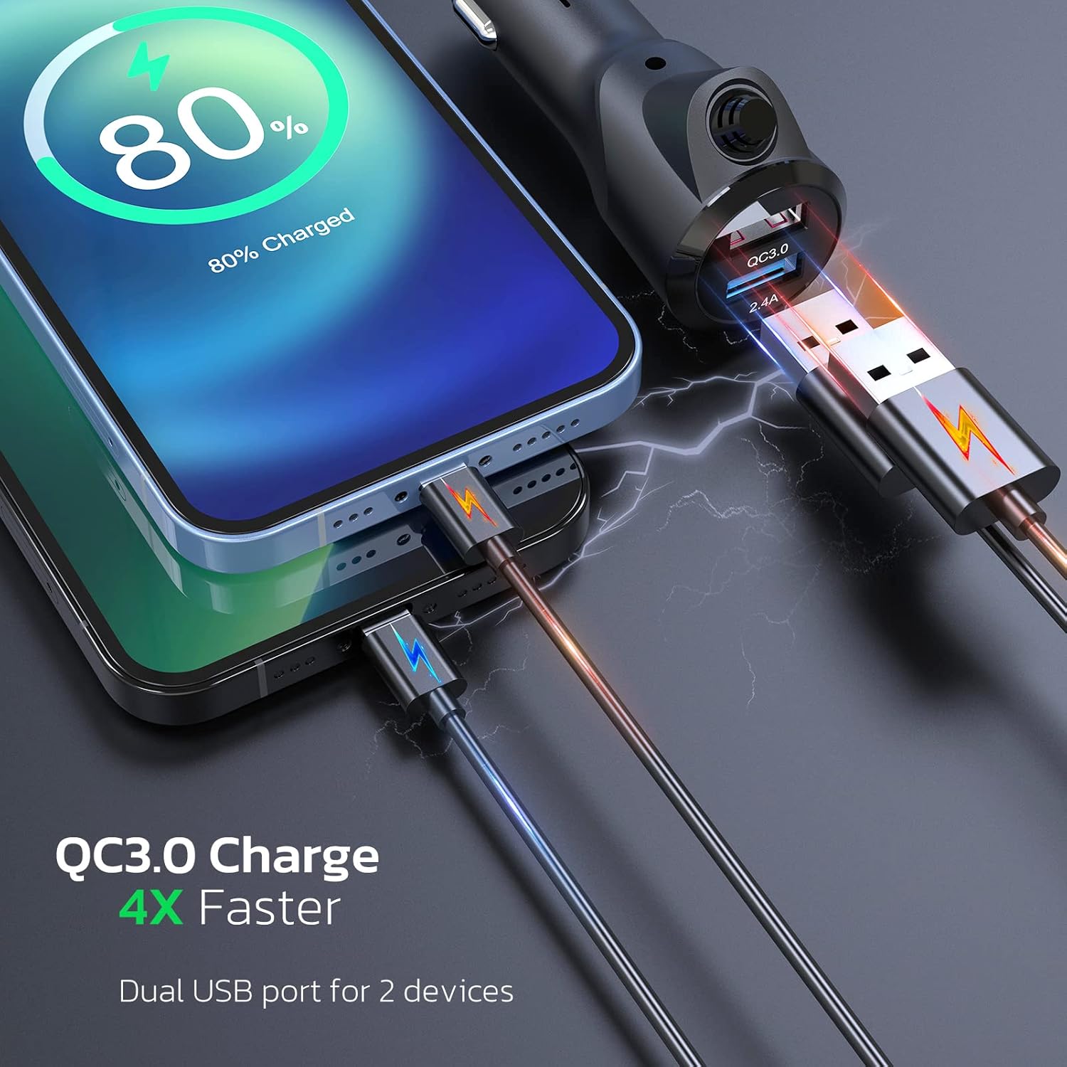 - Dual USB Ports & QC3.0: The dual USB charging port enables you to charge 2 devices at the same time. One of them is a QC3.0 fast-charging port, which can charge your device up to 4 times faster than the standard charge. You can charge 80% of your phone battery just in 35 minutes, saving you much more time than average. Besides that, other ports such as TF card slot, AUX port offer you multiple choices so you can choose to play music via USB drive, TF card, AUX line, Bluetooth.