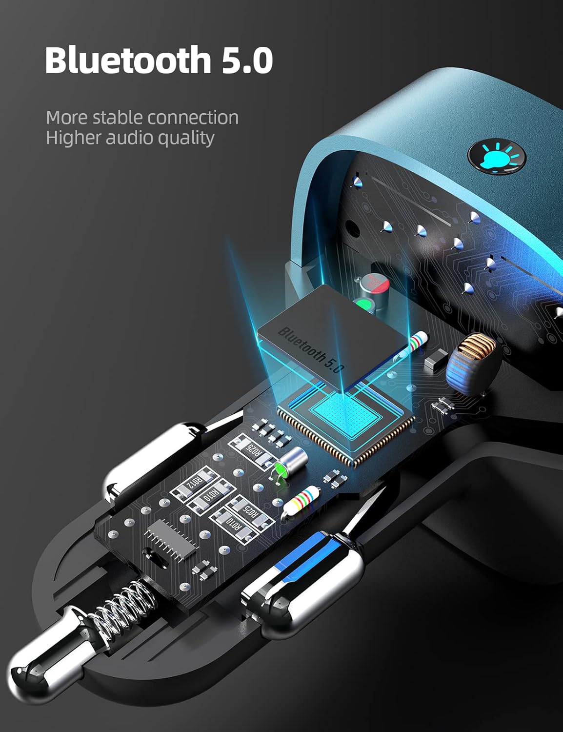 - 7 Color LED Backlit Version: Supporting 7 colors led backlit light, including Red,Green,Blue,Yellowish Green,Purple,Cyan, this Bluetooth fm transmitter will give you a visually stunning display of colors, which is a nice way to match the colors already in the car.