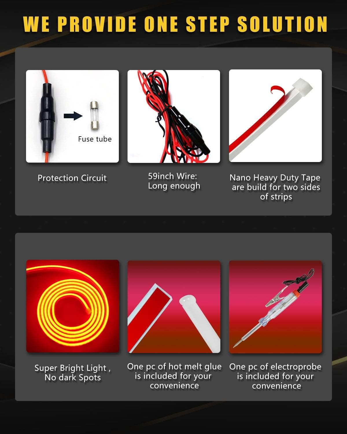 - 【Fuse Protection】The Car led strip light is made of soft silicone with heavy duty Nano Tapes on both sides,Super Bright,No dark Spots.Short circuit protection to enhance the safety.