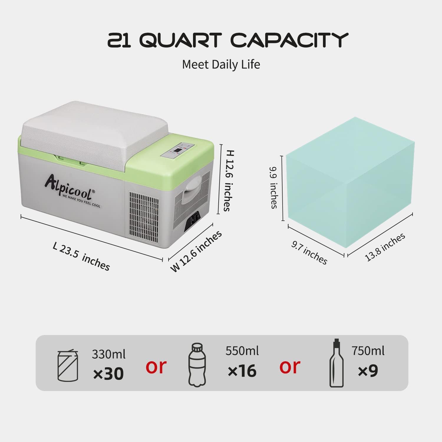 - PRODUCT FEATURE:21 quart capacity,the portable freezer can fit 15 bottles of 18oz water or 30 cans of 12oz cola.