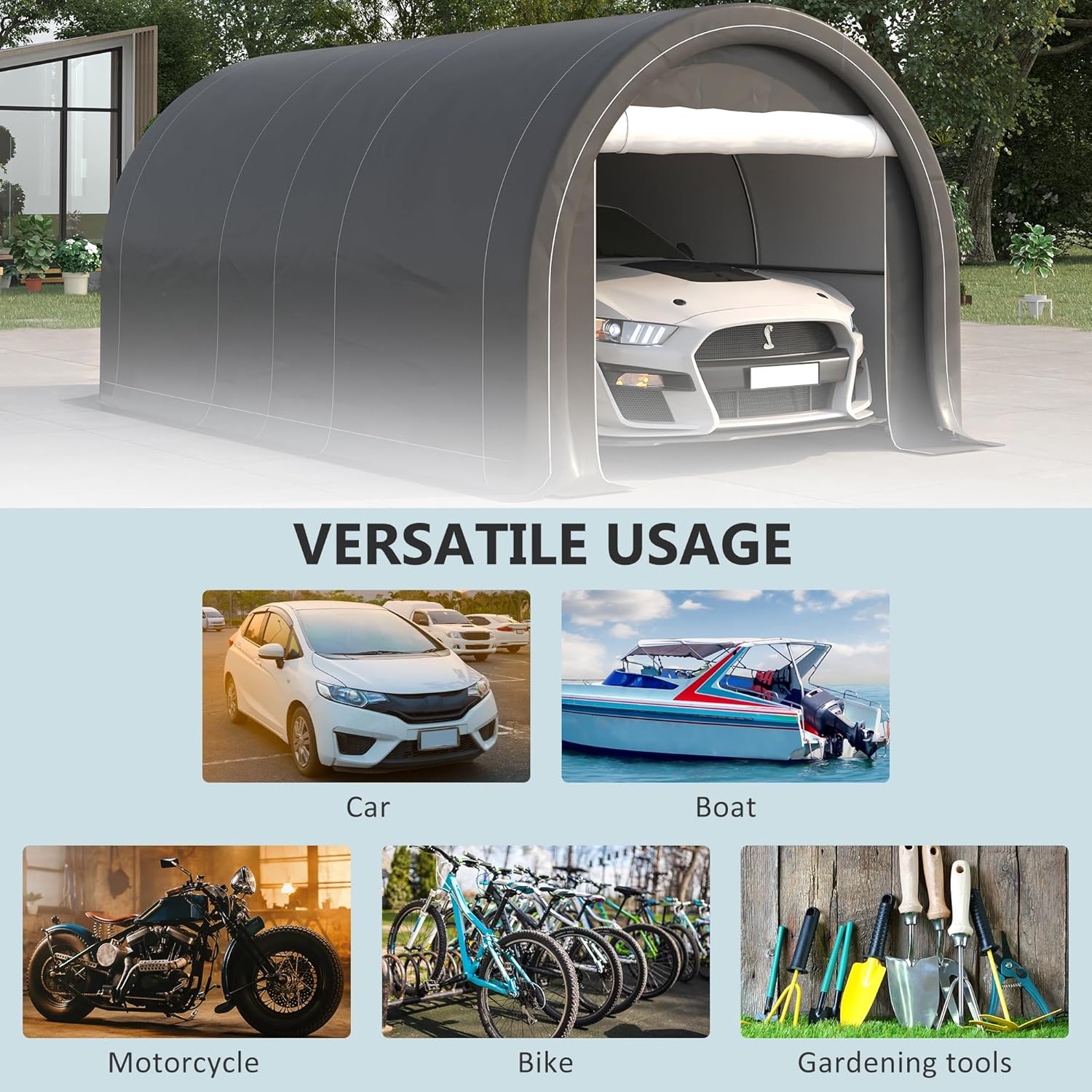 Outsunny 10' x 16' Carport, Heavy Duty Portable Garage Storage Tent with Large Zippered Door, Anti-UV PE Canopy Cover for Car, Truck, Boat, Motorcycle, Bike, Garden Tools, Outdoor Work, Gray