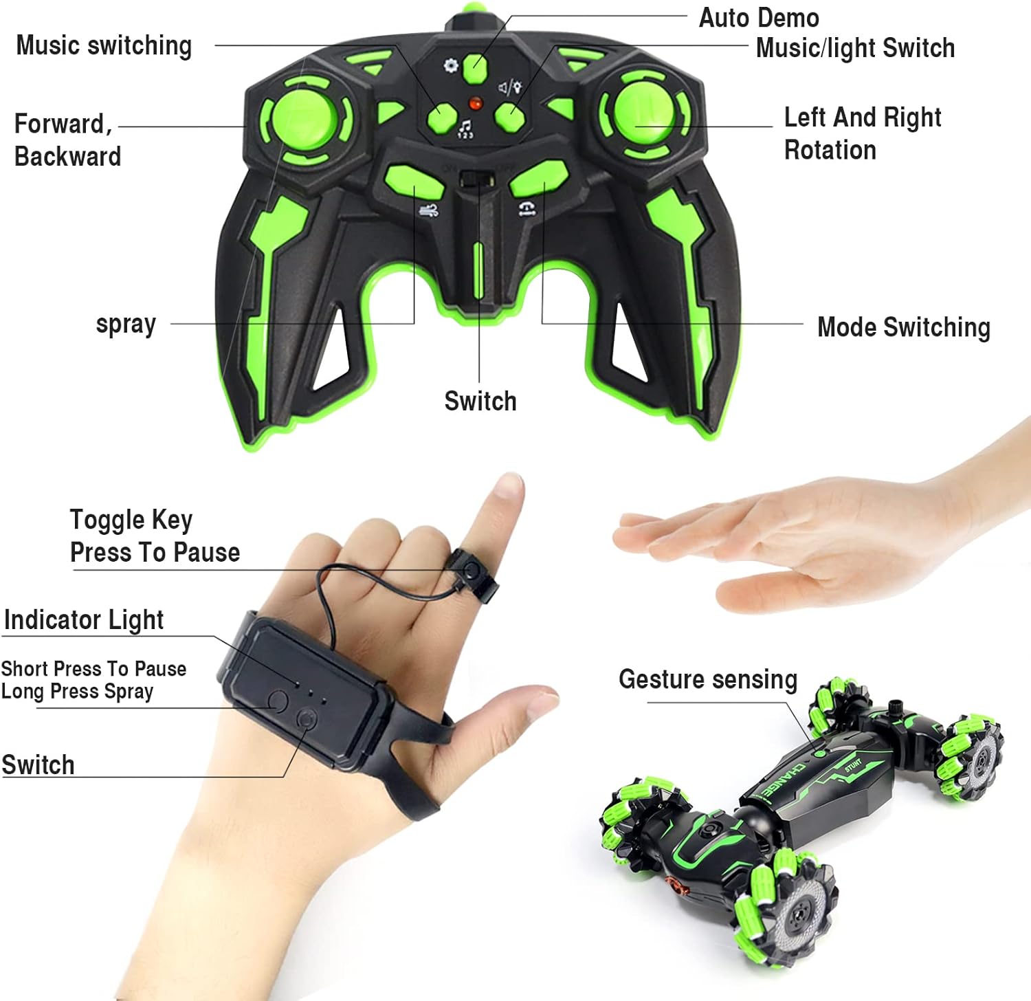 - [Lnnovative Hand Gesture Sensing]: Control the RC stunt car effortlessly with hand gestures, adding a unique and interactive experience for users. need for a traditional remote control, making it easy and fun to operate.