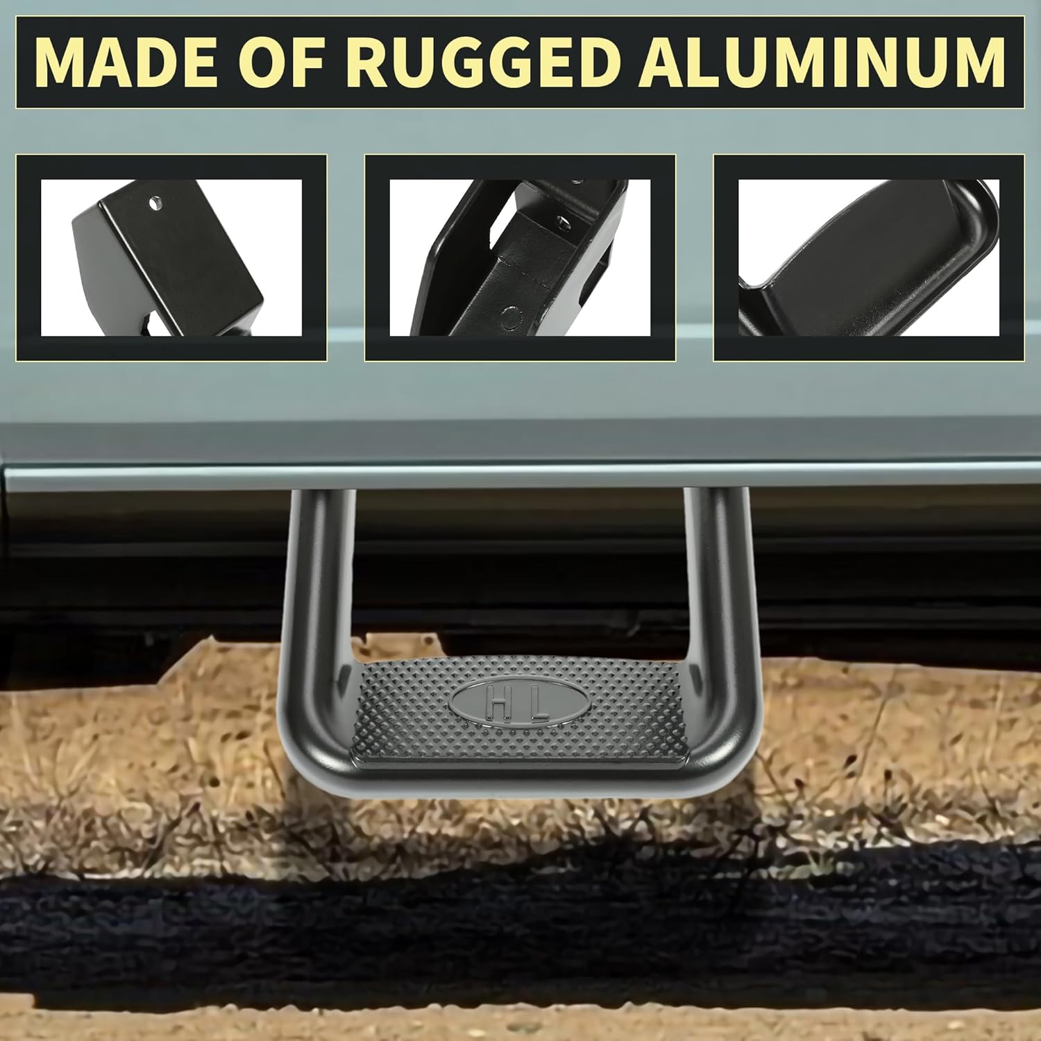 - Superior Quality: Made of rugged aluminum, It has superb durability, not easily damaged, and can withstand extreme weather or harsh use environments. The side step uses a Electrophoresis finish to provide strong surface protection, while the surface covered with dot bumps effectively avoids slipping. This side step allows you to get in and out of a truck or Suv safely and easily